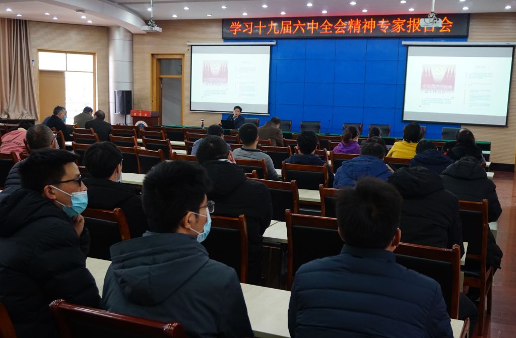 召开教职工政治理论学习会,深入学习党的十九届六中全会精神,学院领导班子成员及全体教职工参加了会议,会议由学院党委书记汪俊武主持。