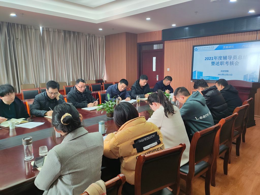 2021年度辅导员工作总结暨述职考核会在礼勤楼702召开,学院党政领导班子成员、系主任、教师代表共10人组成学院考核小组,对辅导员年度工作进行评议。会议由党委副书记李古州主持。