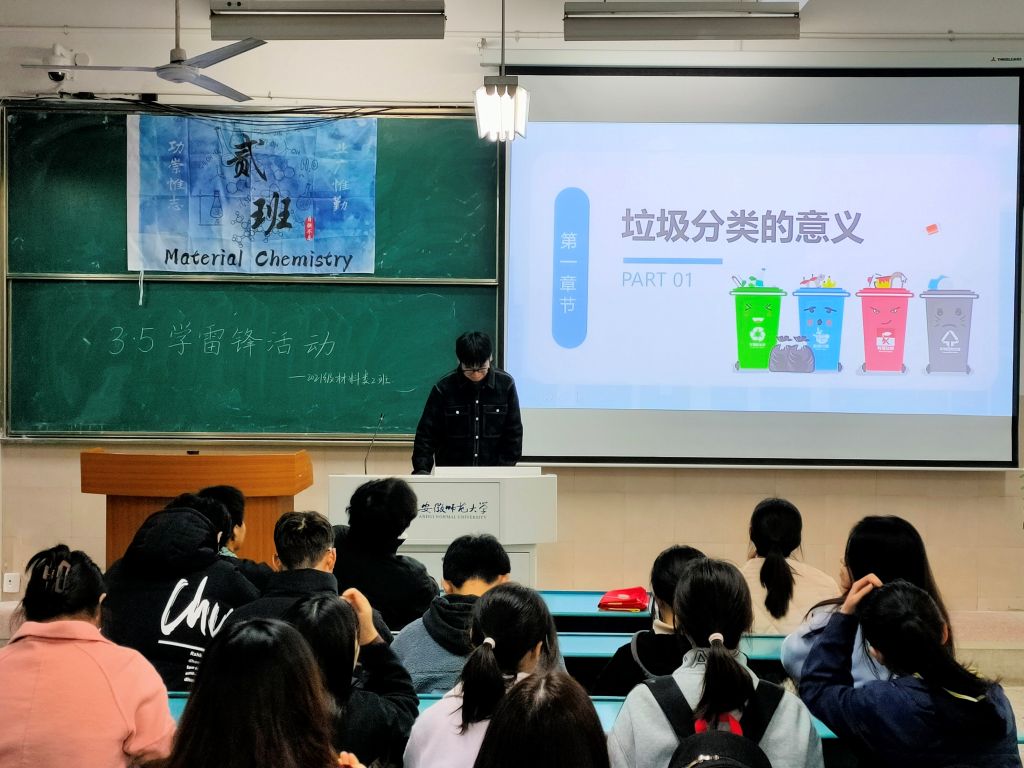 各班级开展学雷锋主题班会,集体观看雷锋纪录片,并向班级学生宣讲垃圾分类小知识。在学习雷锋精神的同时,各班级自发组织人员打扫教室,清洁卫生,并将宿舍楼下车辆摆放整齐,为校园建设贡献一份力量。其中,2020级应用化学专业的学生结合劳动周,开展道路保洁、绿化等劳动工作; 2021级部分学生在辅导员的带领下,前往化材楼羽毛球场,进行清洁工作。