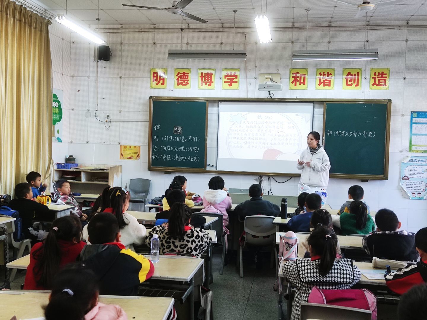 为了将雷锋精神付诸于实践,化材学子结合师范专业特色,前往当地小学开展支教活动。江淮科普学校前往火龙岗中心学校开展支教工作,向小朋友们宣讲有关化学知识,同时还向当地学生展示了一些趣味小实验,寓教于乐;环境保护协会根与芽前往马塘小学给小朋友们带来了环保小知识,为当地学生们树立起环保理念。