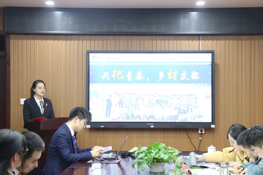 各参评团支部团支书前期精心准备支撑材料,通过PPT展示,围绕思想建设、组织建设、学风建设、作风建设、制度建设、素拓工作、创新工作等方面,对本支部2021年度工作情况进行了总结汇报。各团支部汇报人具体展示了所属团支部在2021年工作开展情况,重点突出了各团支部团员在2021年度的工作、学习成果,展现了各自的支部特色。本次评选会共有9个团支部参与评选,评委老师现场打分,最终评选出5个优秀团支部。