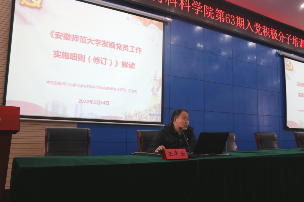 组织员汪丰云在专题报告中指出,本期培训班在建团100周年之际开展,意义重大。他向学员讲解了学校发展党员实施细则的背景及修订,希望全体学员能够明确发展党员的总要求,熟悉入党四个阶段的详细流程,提高思想政治觉悟,深刻领会开展入党积极分子培训的重要意义。他以精心制作的入党流程图对入党程序进行细化的讲解,让学员们对申请入党的程序有了充分、系统的认识。他强调,要遵守组织纪律,强化过程管理,将思想汇报工作细分到平时,在学习工作中发挥先锋模范作用。