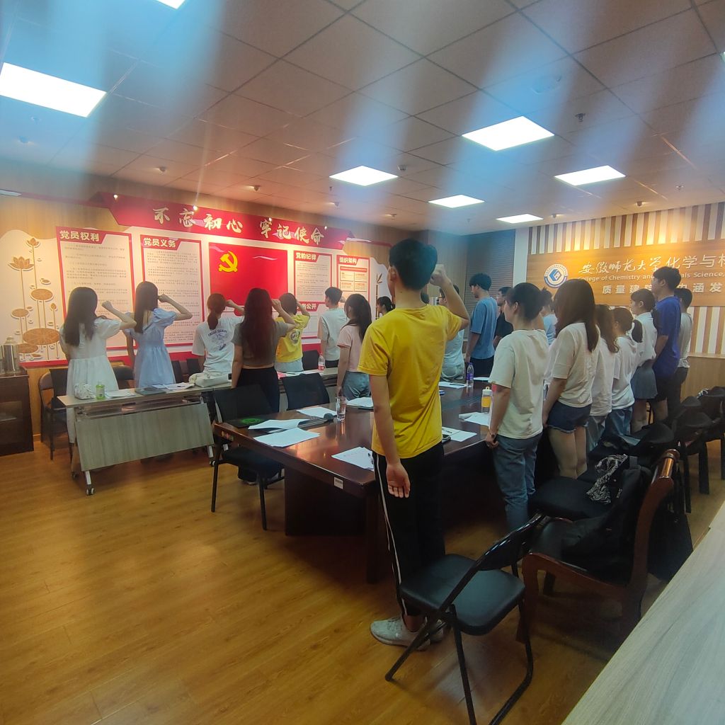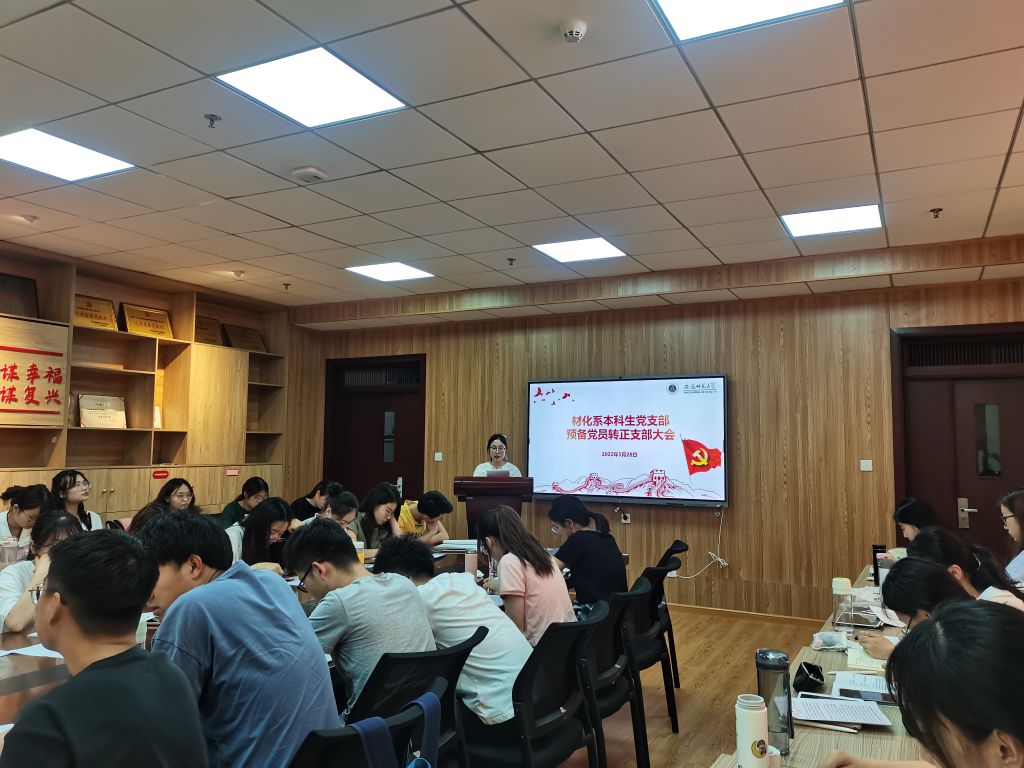 材化系本科生党支部在礼勤楼707会议室举行了预备党员转正党支部大会。由主持人王芳老师介绍与会人员,宣读转正流程,16名预备党员依次宣读转正申请,陶勇、王芳同志作为培养联系人依次评价预备党员在预备期内的表现以及是否同意其转正,与会党员发表意见评价,最后由支部正式党员进行无记名投票表决,大会表决结果为全票通过唐丽君等16位同志按期转为正式党员。