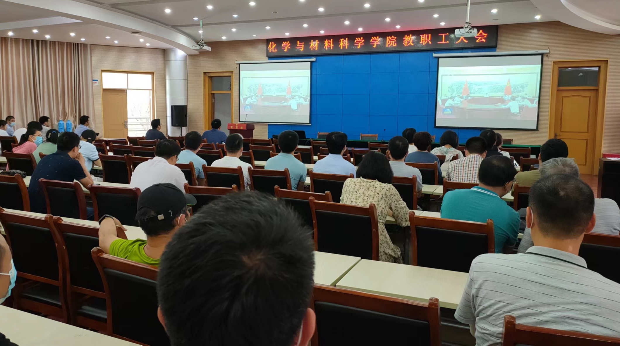在会议中心第三会议室召开新学期全体教职工大会,开展政治理论学习,部署化学学科及基础教育振兴行动计划,开展党风廉政及师德师风教育。学院全体教职工参加会议,会议由院长高峰主持。