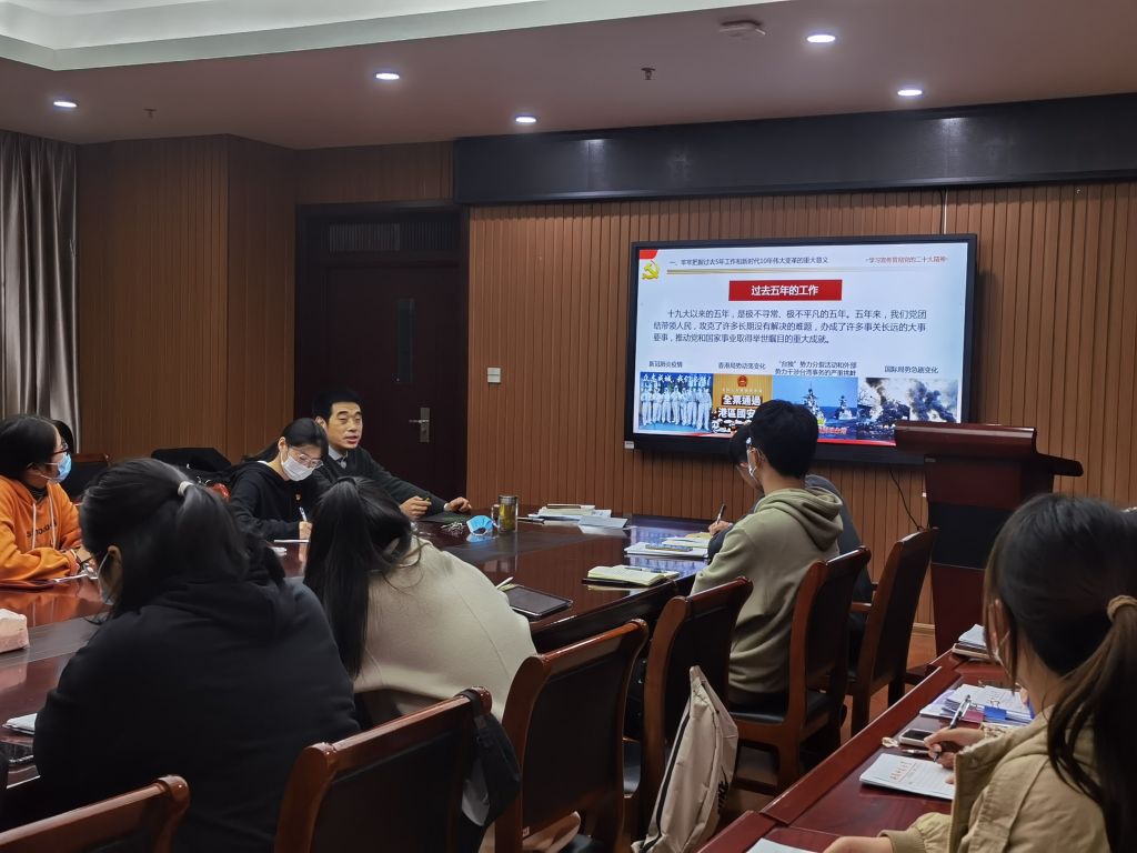 党委委员、副院长王波涛为化工系本科生党支部讲授“深入学习宣传贯彻党的二十大精神”专题党课,会议由化工系本科生党支部书记张浩主持。