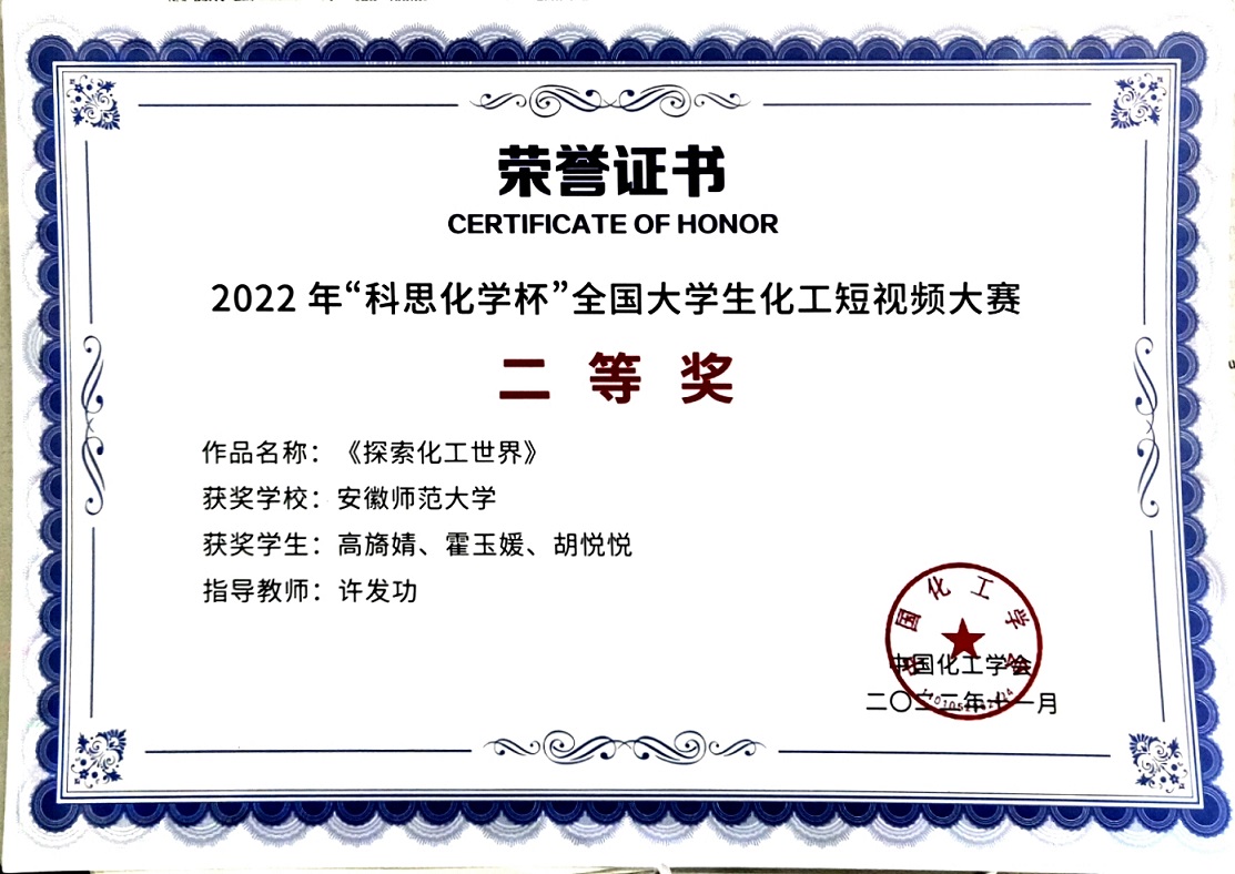 高旖婧)近日,由中国化工学会主办、南京工业大学承办的2022年“科思化学杯”全国大学生化工短视频大赛决赛落下帷幕。本次赛事自2022年4月启动以来,共吸引来自清华大学、天津大学、浙江大学、华南理工大学等全国71所高校的154部作品参赛。