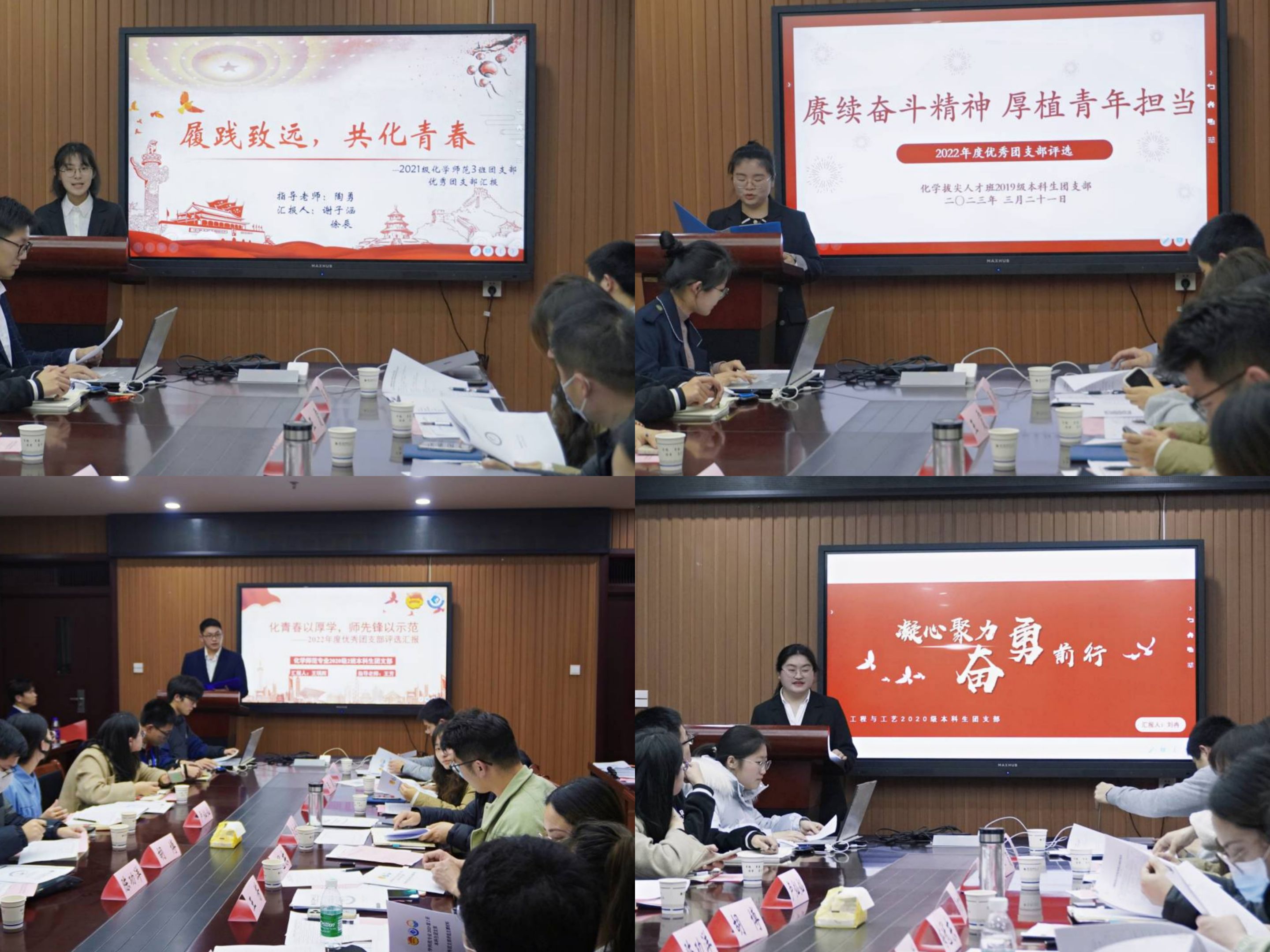 于2023年3月21日在礼勤楼702会议室召开2022年度优秀团支部评选汇报会。学院党委副书记李古州、团委书记梅冠东、各年级辅导员和本科生各团支部代表参加本次会议。会议由2022级化学师范专业学生杜旻展主持。