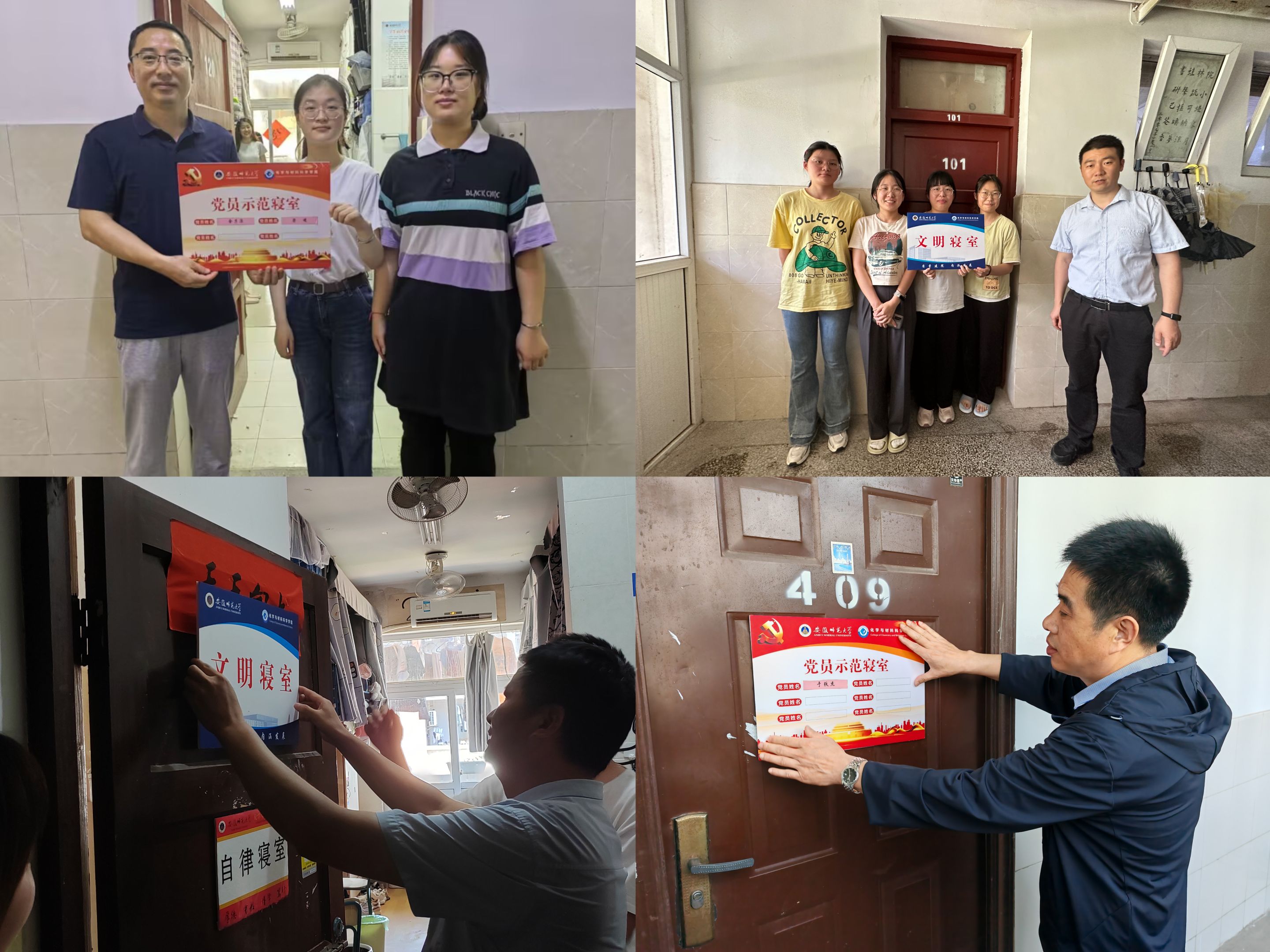 于6月8日开展了“文明寝室”及“党员示范寝室”挂牌行动,学院领导班子、全体专兼职辅导员参与此次挂牌行动。“党员示范寝室”、“文明寝室”创建活动是我院“六个文明”教育和一站式学生社区建设的重要组成部分,旨在发挥党员学生先进模范作用,促进学生宿舍自我管理,打造优秀宿舍文化,营造“温馨、安全、有序”的学习生活环境,共创“和谐、求知、上进”的寝室氛围。