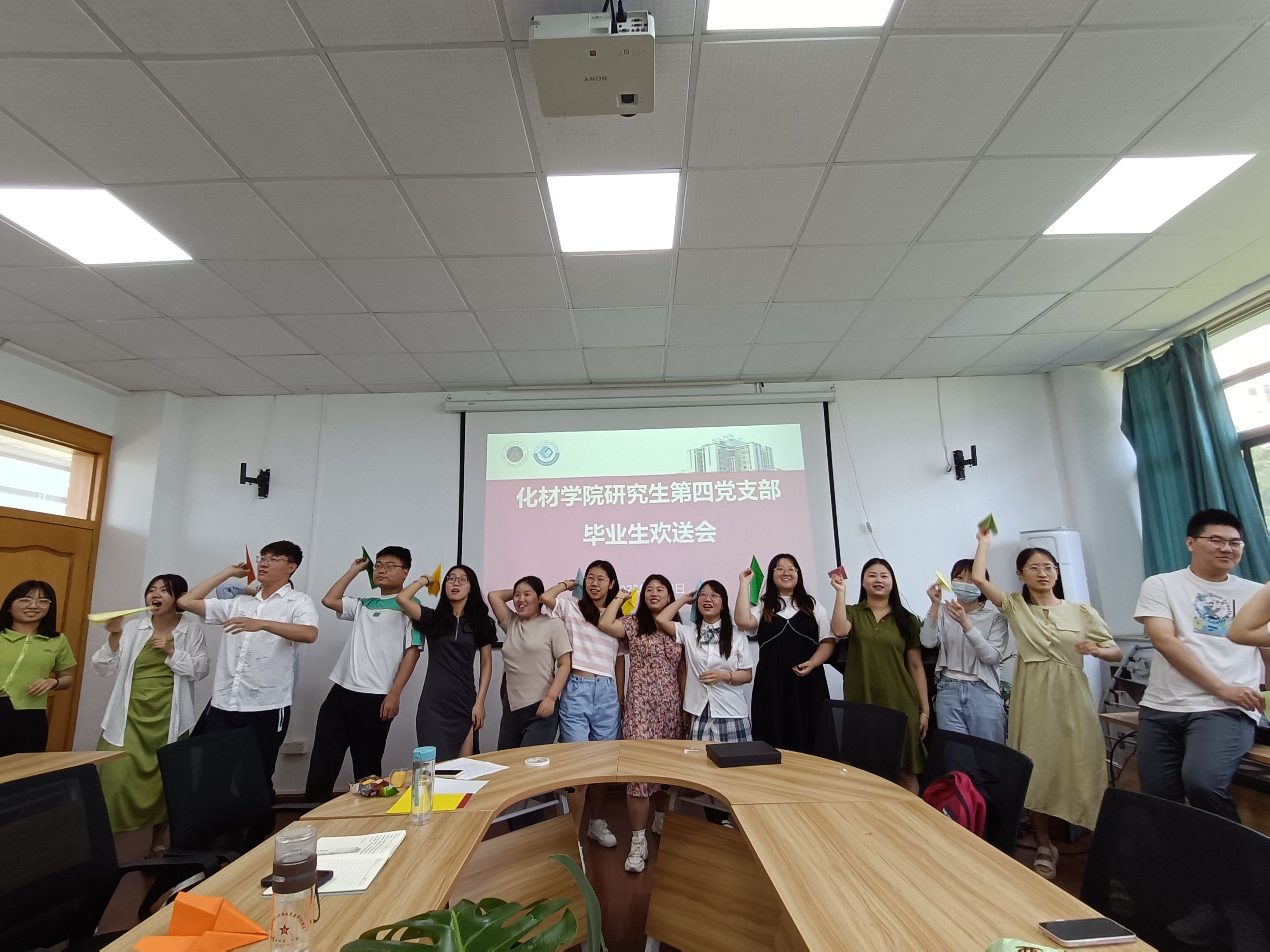 研究生第四党支部于学苑北楼9号楼205会议室举办2023届毕业生党员欢送会,研究生辅导员张薇、邱霞,毕业生党员以及2022级党员代表、入党积极分子代表参加本次活动,活动由研究生第四党支部支委胡宇阳主持。