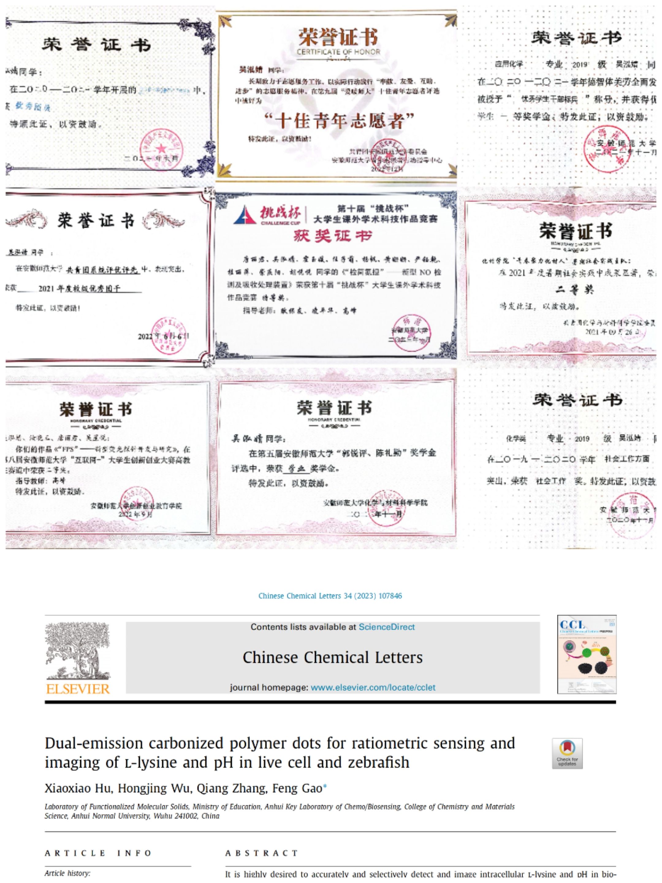 2019级化学工程与工艺专业本科生,目前已保送至重庆大学攻读化学工程与技术专业,2023年安徽省普通高等学校优秀毕业生。