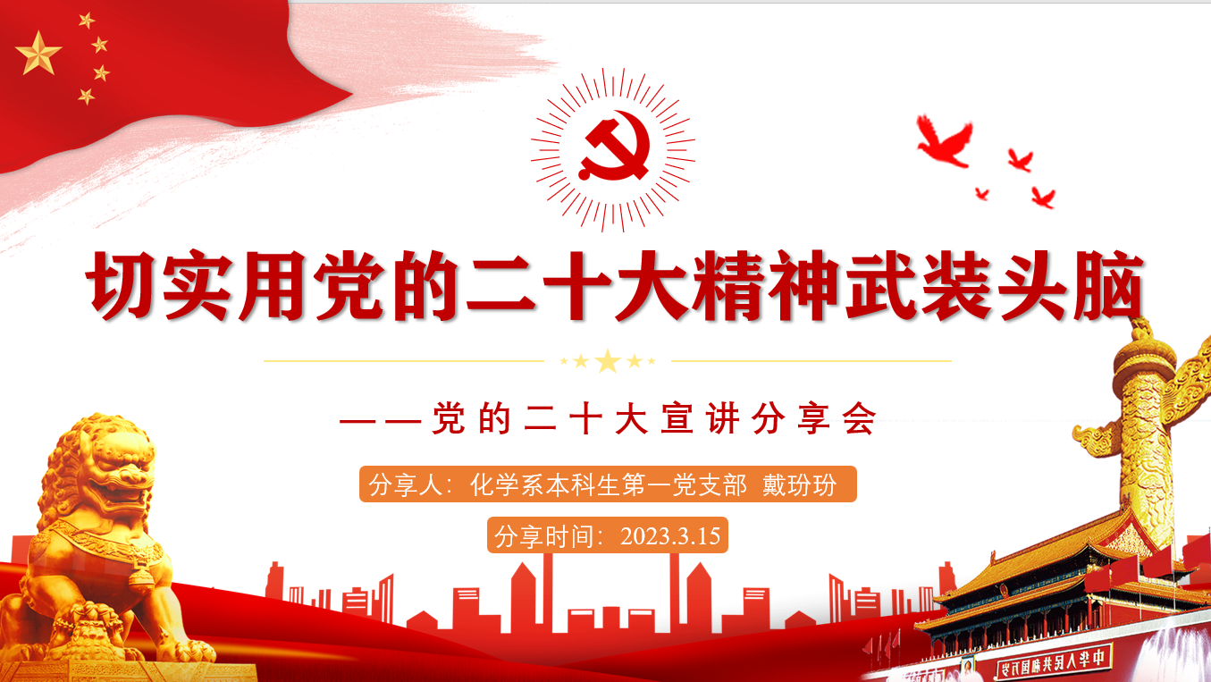 入队、入团、入党,是青年追求政治进步的“人生三部曲”。自幼在军营长大接受红色教育的她,早就把成为一名光荣的共产党员作为自己的理想。大学伊始,她就递交了入党申请书,积极学习党史相关的理论知识,参加党课培训和志愿服务。跨越百年识初心,迈向复兴悟使命。大二暑假,汤璐璐作为入党积极分子加入党史宣讲团,她通过查阅事迹、采访“在党五十年”老党员和优秀党员老师,将党史和化学学科结合,向暑期学校的学生和养老院老人等社会群体讲述党百年奋斗征程中化学家的身影。她希望大家认识到化学不仅应用于日常生活,而且化学学科的成长与祖国的强盛息息相关。作为一名学生党员,她更加严格地要求自己,在集体中自觉承担责任起到表率作用。日常生活中,她通过浏览人民日报客户端,了解时事政治,阅读有品质有温度的新闻,思考针砭时弊、一针见血的锐评,同时她也在学习强国上观看视频,回答问题。此外,她主动参加学院的义务清扫、迎新等活动。她希望用自己的力量服务群众,不断向优秀党员的标准靠近。