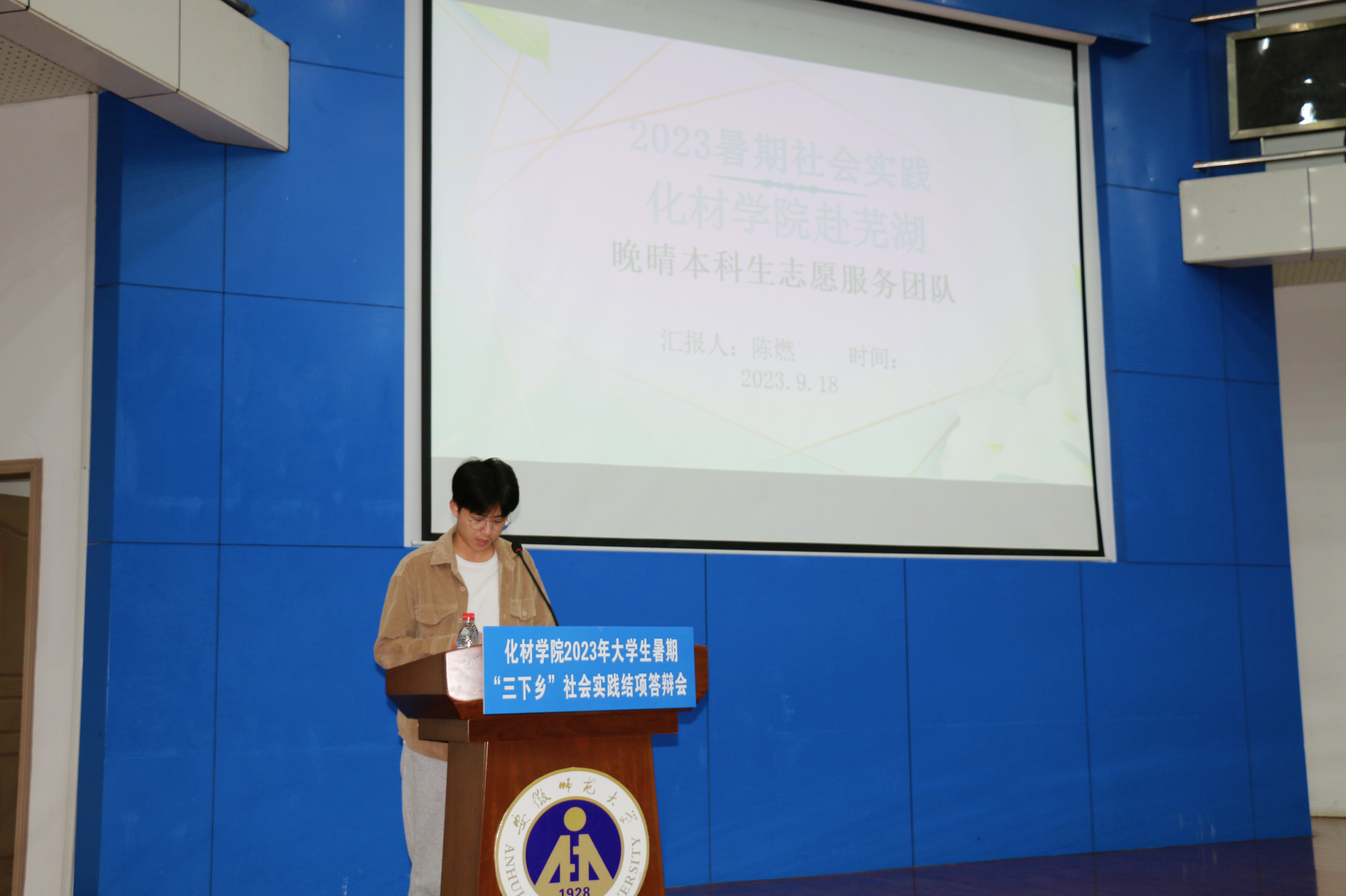于敬文图书馆报告厅开展2023年大学生“三下乡”暑期社会实践团队总结汇报会。学院党委副书记李古州,团委书记梅冠东、团委副书记陶勇、张薇、全体专兼职辅导员,以及暑期社会实践团队和2022、2023级各班学生代表参会。汇报会由汪子欣主持。