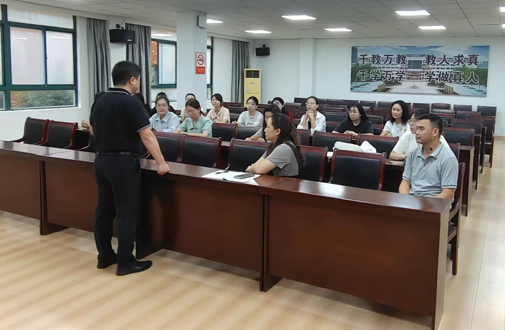 芜湖市第十二中学教务处主任陈波老师代表芜湖市第十二中学全体师生对此次参加教育见习的同学们表示热烈欢迎,他希望通过此次教育见习能给研究生同学们带来教育观念和教学技能的提升,通过观摩芜湖市第十二中学优秀教师的课堂能够学有所获、学有所长。校教务处副主任刘峰老师指出,常态课教学不同于示范课教学,在见习期间,同学们接触到的大多是常态课,希望同学们能在接下来的见习中跟随指导老师在思想觉悟和专业认知方面都有一定的提升。
