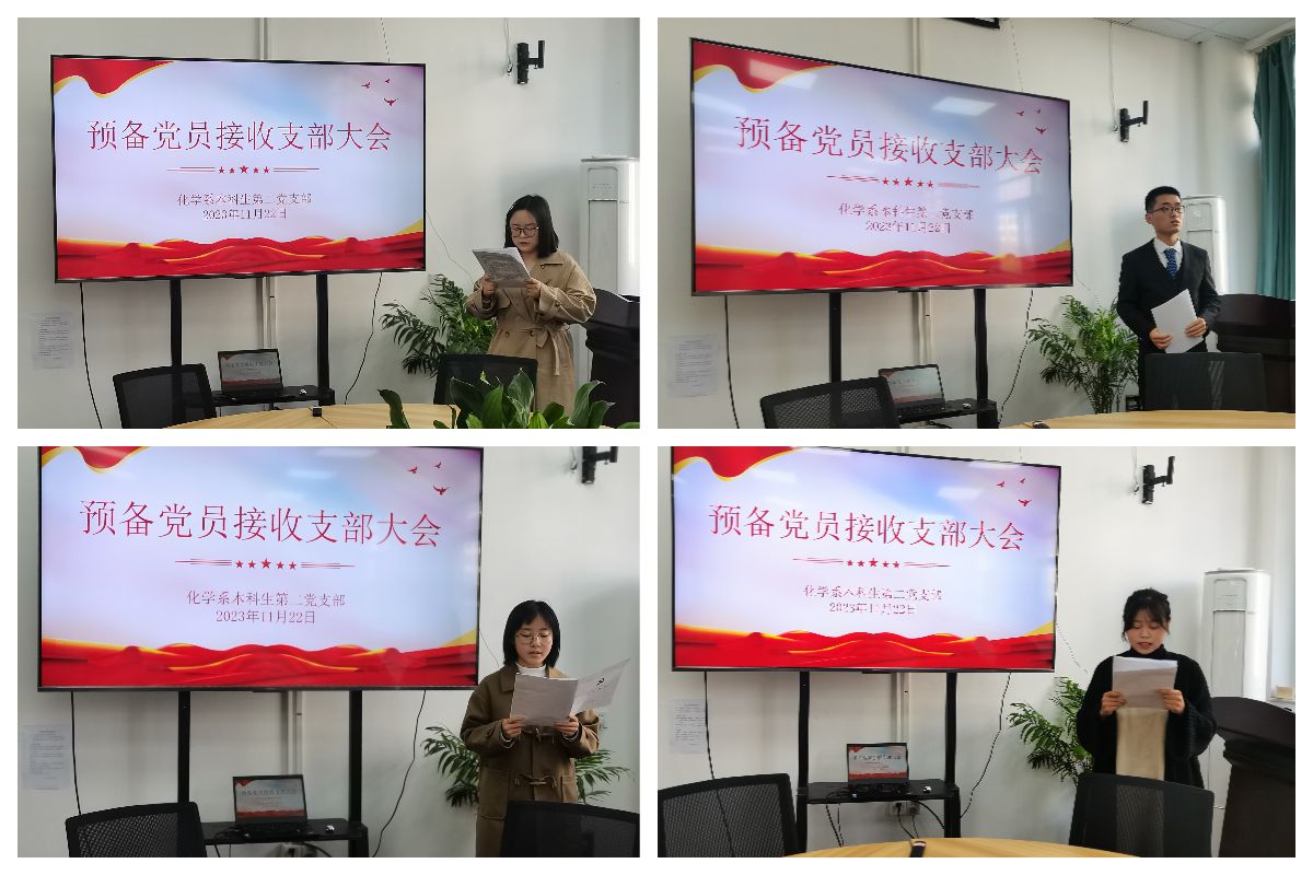 本网讯(化学系本科生第一党支部 王瑀辉)2023年11月22日上午,化学系本科生第二党支部于学苑北楼9号楼205会议室召开了2023年下半年党员发展支部大会。本次支部大会应到会正式党员3人,实到会3人,党员人数符合组织规定,学院党委副书记李古州列席指导,会议由支部书记陶勇主持。
