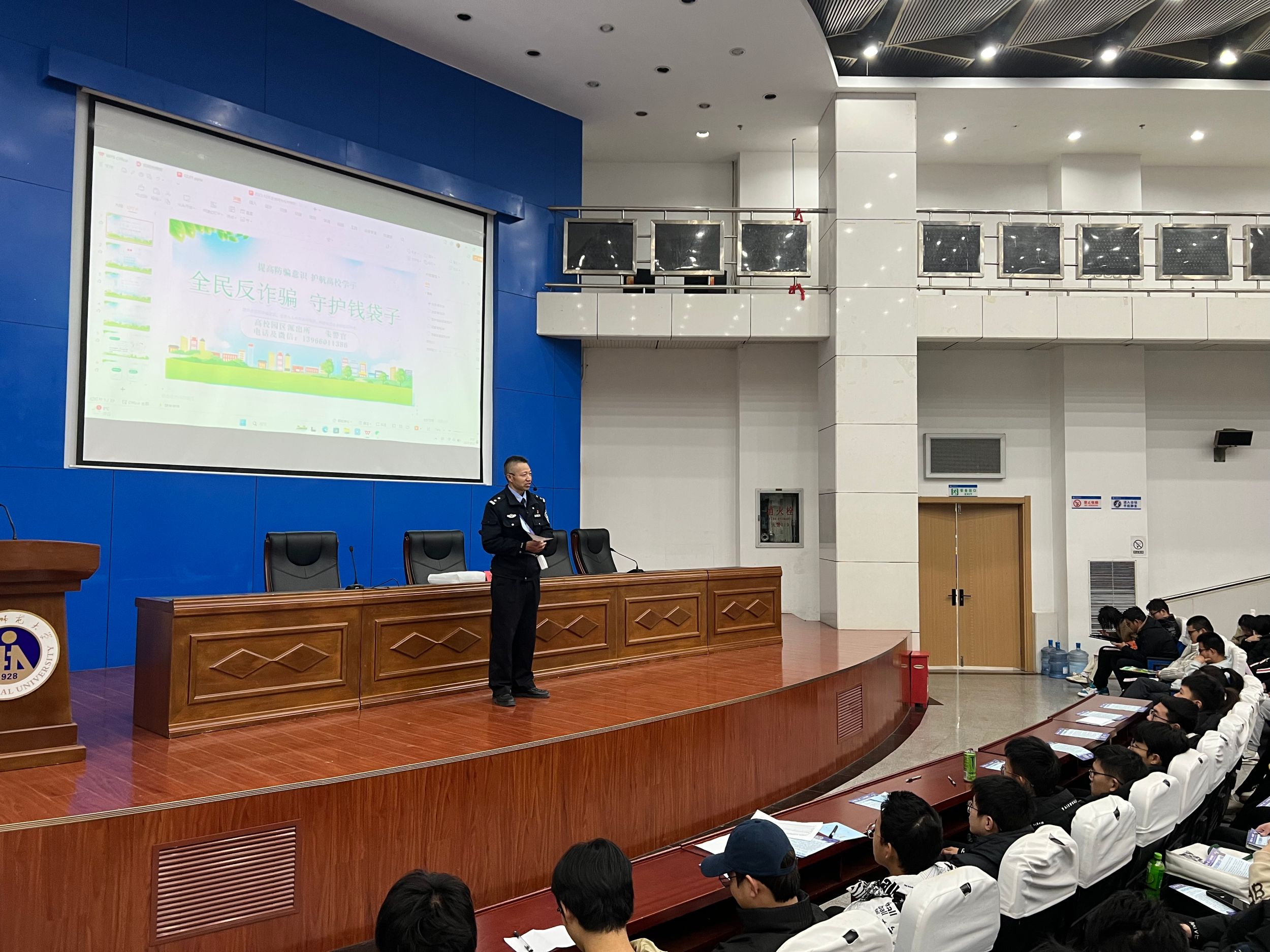 在培训阶段,学院邀请高校园区派出所副所长朱滦河作题为《提高防骗意识 护航高校学子》的专题讲座。他围绕高校的典型案例、诈骗案件的类型、诈骗带来的危害、校园安全的注意事项等方面展开论述,通过结合具体案例向同学们科普了常见的诈骗方式,并传授识别、防范诈骗的方法和技巧,提醒同学们未知链接不点击、陌生来电不轻信、个人信息不泄露、转账汇款多核实。他强调,楼层长、寝室长和学生干部是开展校园安全教育的中坚力量,承担着联系学校与学院、楼宇内宿舍间的桥梁纽带的职责,必须带头宣传校园安全知识,营造平安、和谐的学习生活氛围。