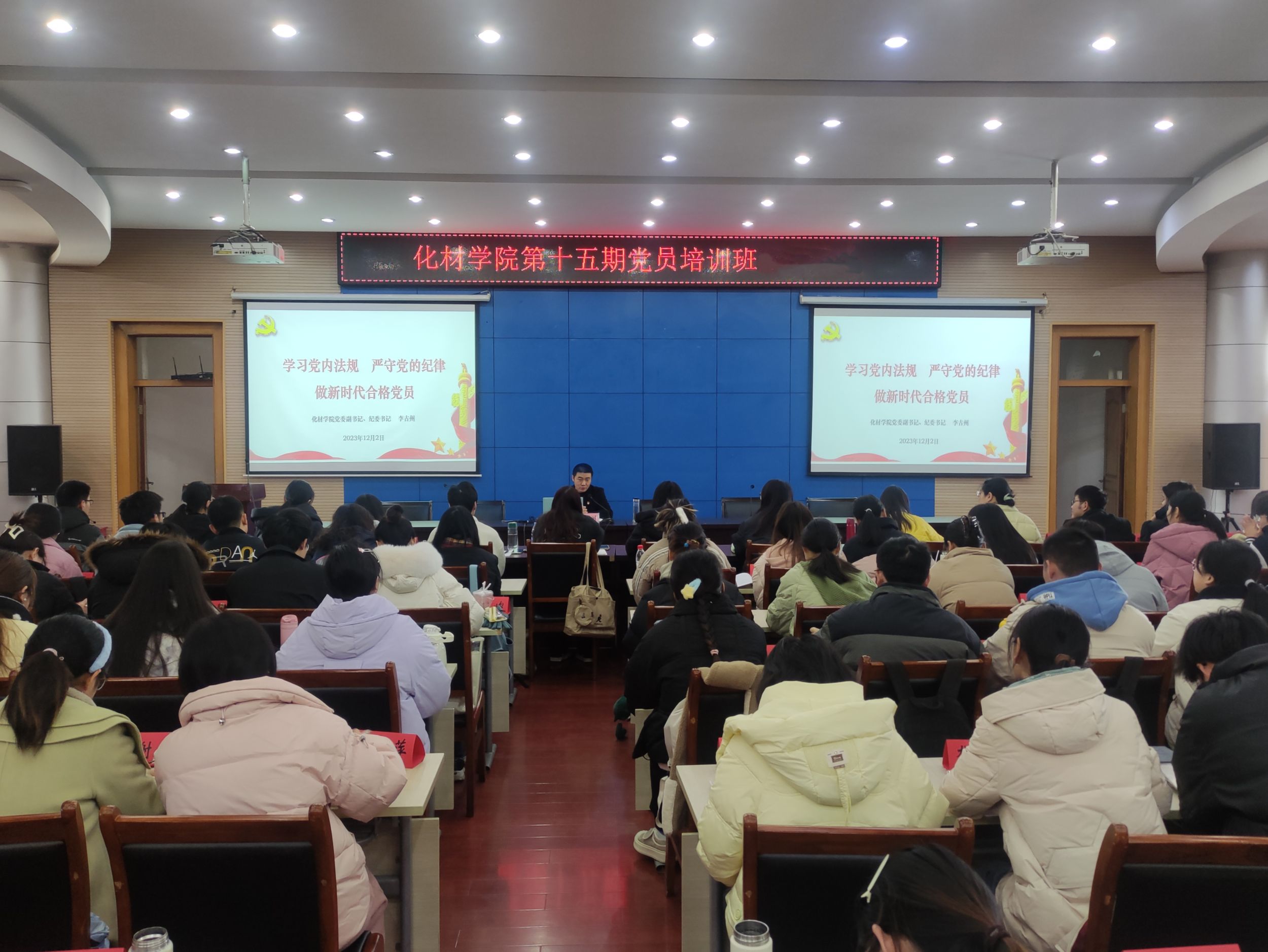 理论课程,提升理论素养。学院党委副书记、纪委书记李古州以《学习党内法规,严守党规党纪》为主题,全面梳理了党内法规建设的历程脉络,重点介绍了党的十八大以来党内法规的框架体系和制度体系,详细解读了党的二十大报告中关于“坚定不移全面从严治党,深入推进新时代党的建设新的伟大工程”的内容,深入剖析了《中国共产党廉洁自律准则》《中国共产党纪律处分条例》《关于新形势下党内政治生活的若干准则》这三部重要法规,讲解了党内政治生活的突出问题,同时从增强政治意识、严格工作秩序、自觉接受监督三个方面呼吁全体学生党员要不忘初心、牢记使命、严守党纪。