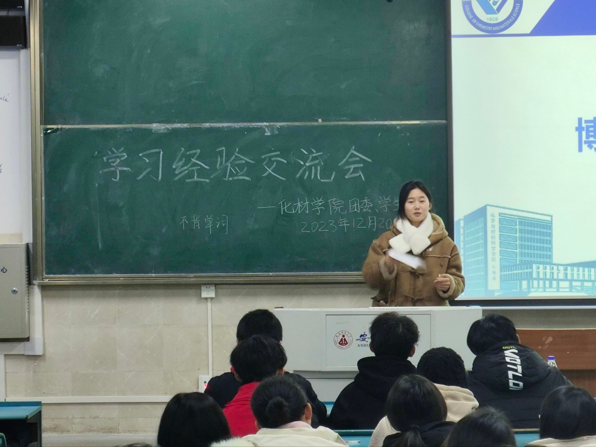 会议中7位优秀的学长学姐依次给大家分享了在学习生活中的宝贵经验,其中有高数、线代和四大化学等学科的学习方法,还有竞赛、绩点及如何完成个人培养方案等方面的心得体会。交流会上学长学姐们多次强调大学规划的重要性,以自己的求学经历为例,为学弟学妹们树立了良好的榜样。他们或慷慨激昂,或耐心教导,或娓娓道来,或倾囊相助,热情为学弟学妹们解疑答惑,赢得台下掌声连连,也温暖了冬日里学弟学妹们的心。