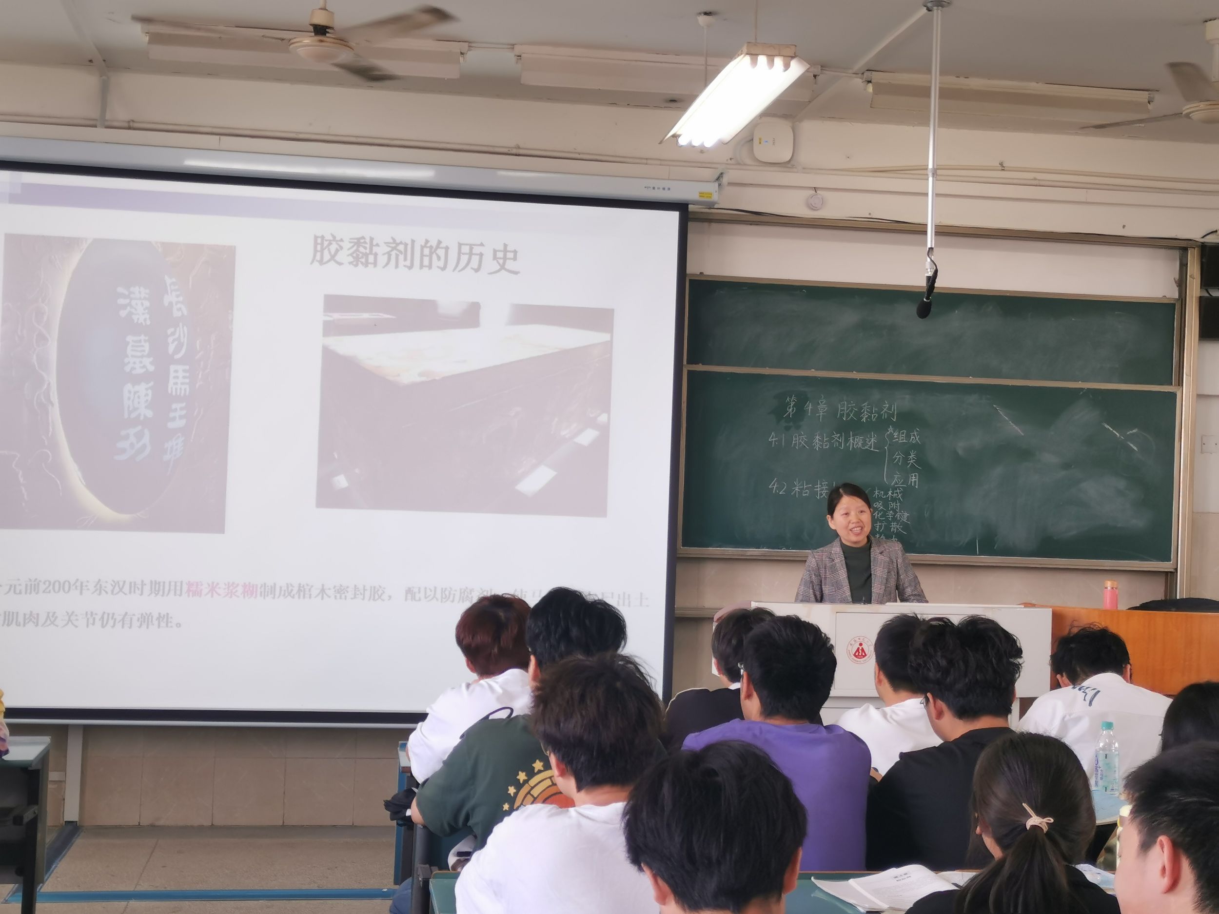本节课的主要内容是胶黏剂,王银玲老师首先通过介绍胶黏剂的历史来引入课堂-胶黏剂历史悠久,甚至在秦长城上胶黏剂也发挥着不可替代的作用,这激发了同学们对胶黏剂的学习兴趣。接着讲到胶黏剂的组成、分类以及应用,这让同学们了解到胶黏剂的组成较为复杂,对基料和辅助材料都有要求,例如辅助材料增塑剂的添加量增多,一方面它可以使抗冲击强度提高,但也会使内聚强度下降,这对于同学们的生活与学习都有一定的启发,让同学们在体会化学魅力的同时,也收获到一些思想上的启发。随后王老师讲到了胶黏剂的应用,虽然它有很多优点,但也有诸如强度不够高,耐久和耐候差,粘接可靠性不好等问题,王老师与同学们优良互动,希望同学们在日后的学习与工作中能够解决这些难题,使胶黏剂能够在更大的空间领域中发挥更大的作用,造福于人类的生活。