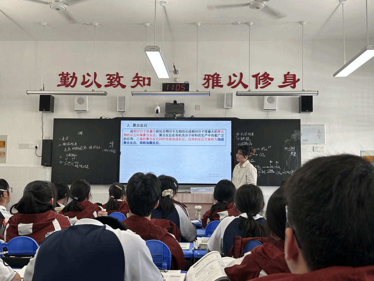 铜陵中学夏劲云校长、黄成健副校长、谢正华主任热情接待了方臻副院长一行。双方围绕师范生培养工作进行了简短交流和探讨。方臻一行到高一(16)班观摩了实习生史若雨《乙烯》公开课。课堂上,史若雨同学以饱满的热情和专业的素养,展现了扎实的专业知识和精湛的教学技能。整个化学实习小组精心设计的教案、史若雨同学生动有趣的讲解以及与学生们的良好互动,赢得了在场师生的肯定。领导老师们对实习生们的表现给予了评价,并鼓励他们继续努力,不断提升自己的专业素养和教学能力。