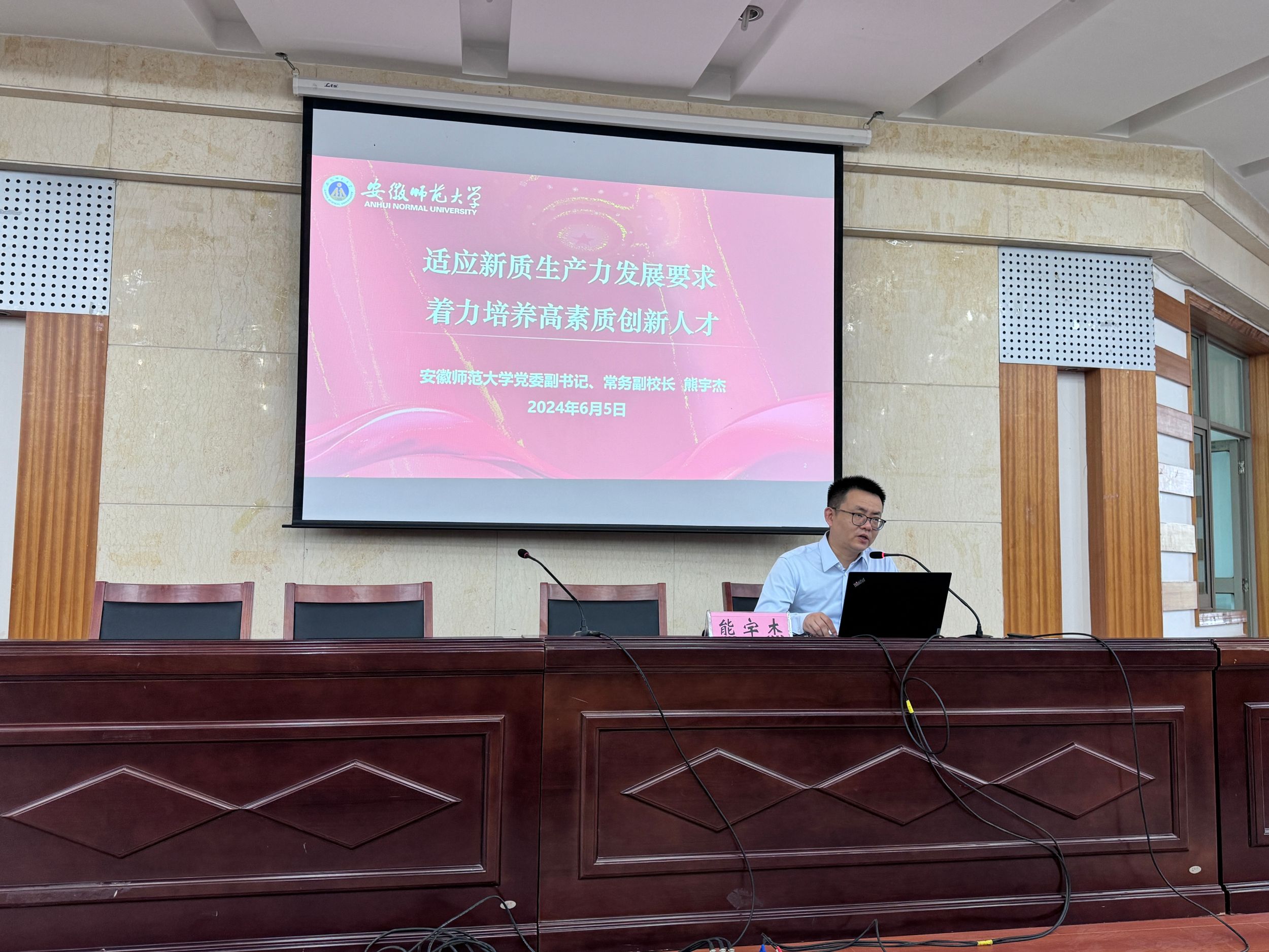 熊宇杰以《适应新质生产力发展要求,着力培养高素质创新人才》为主题,围绕“新质生产力的提出、新质生产力的概念、解析新质生产力、新质劳动者培养”四个方面展开授课。他指出,新质生产力由技术革命突破、生产要素创新性配置、产业深度转型而催生,特点是创新,关键在质优,本质是先进生产力。“新质生产力”概念的提出是对马克思主义生产力理论的继承与发展,是对“科学技术是第一生产力”重要论述的深化,是习近平经济思想的最新理论成果。他强调,学校认真落实立德树人根本任务,坚持人才强校战略,大力实施“大学生护航、学科振兴、基础教育振兴”三大行动计划,着力打造一支具有科学家精神、企业家精神、教育家精神的劳动者队伍,为科技创新教育打造更加坚实的基础平台,努力将学生培养为堪当民族复兴重任的时代新人。