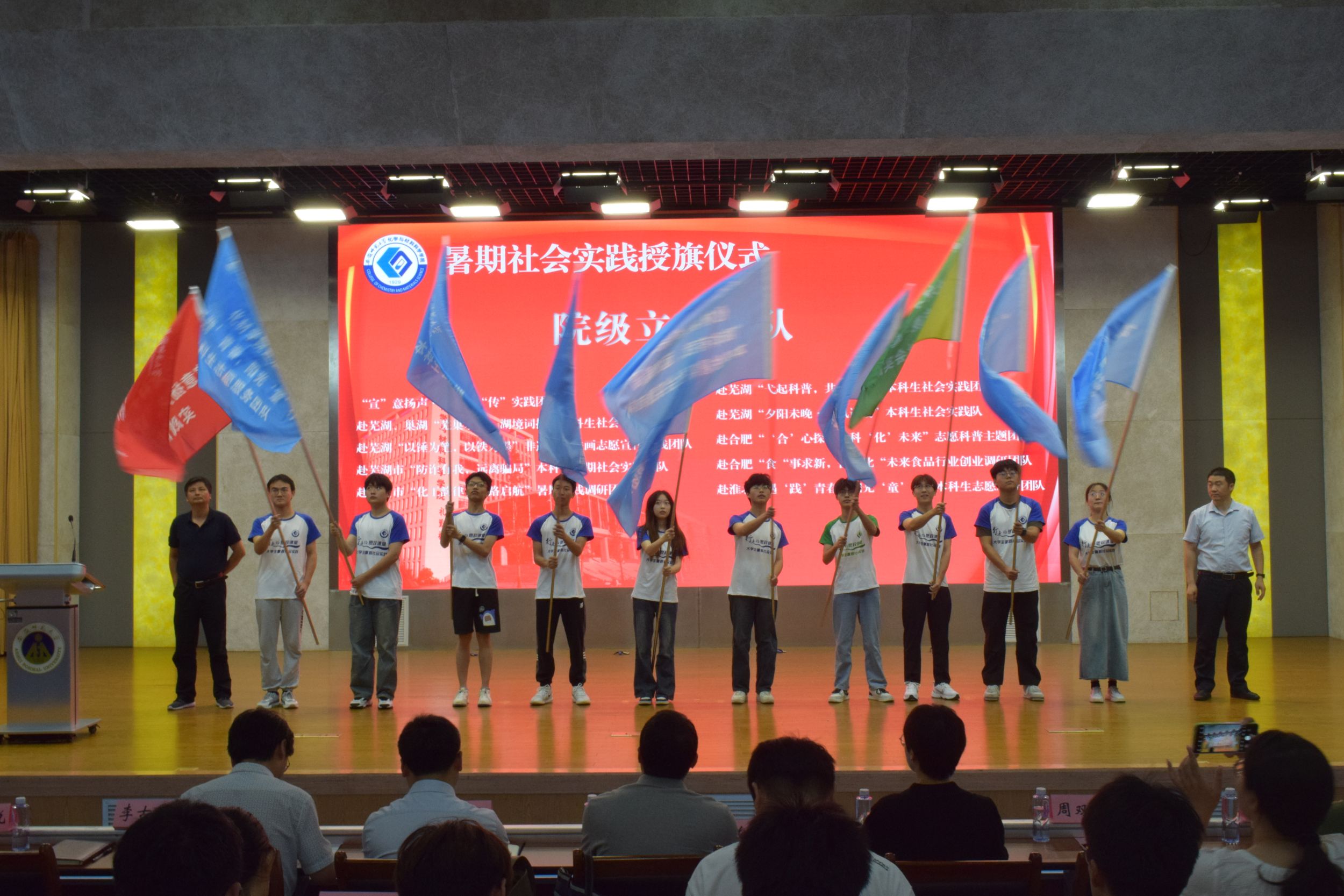 在花津校区实习实训中心一楼报告厅举行“行走的思政课堂”2024年大学生暑期“三下乡”社会实践出征仪式。校思政指导教师、马克思主义学院副院长赵冰,校思政指导教师何晔,学院领导班子、指导教师代表以及全体实践队员参加仪式。出征仪式由学院团委书记梅冠东主持。