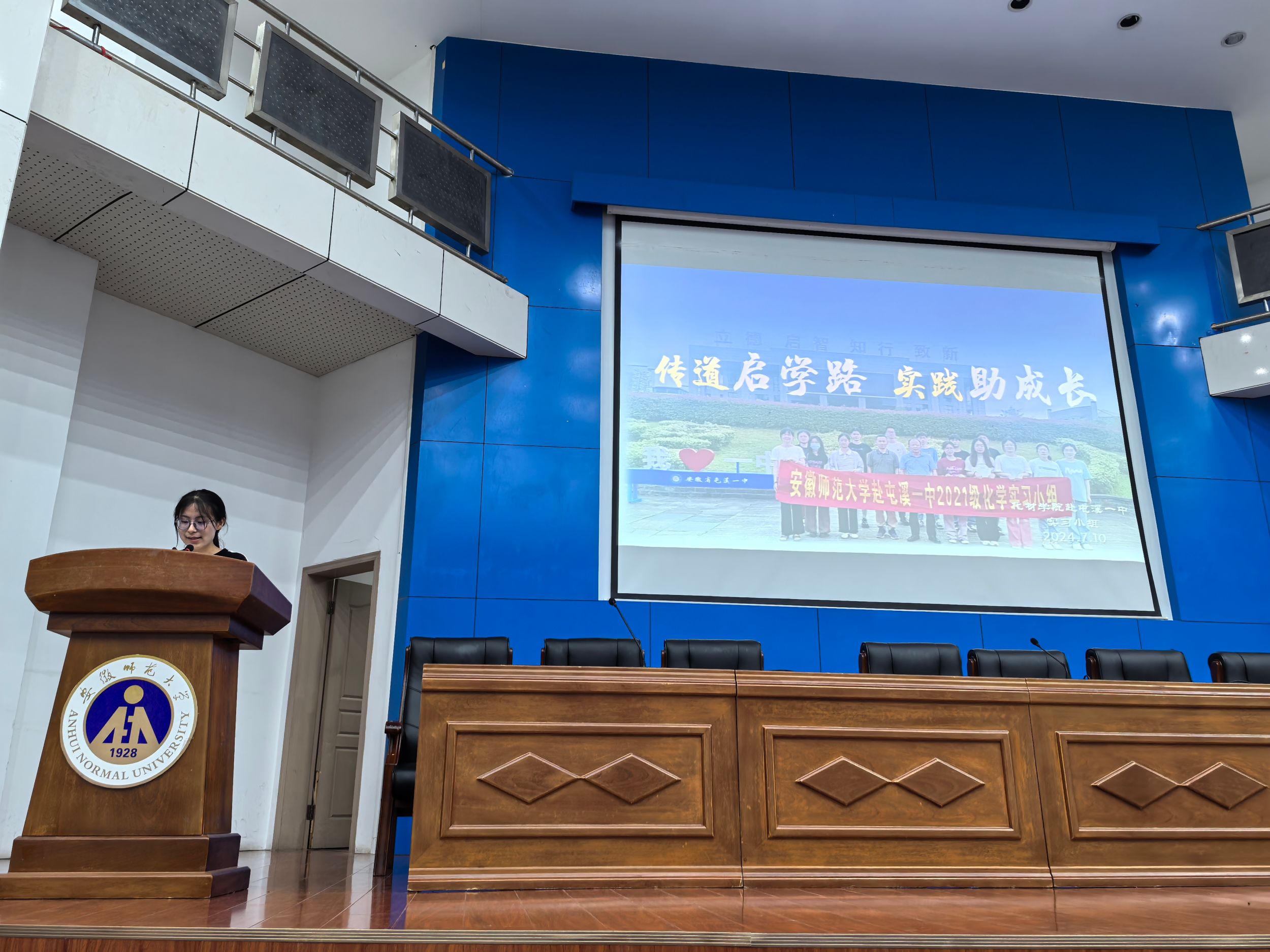 在敬文图书馆报告厅举行2021级化学师范专业教育实习成果汇报暨经验交流会,学院教学副院长崔鹏、校内指导教师代表、相关专业辅导员、2021级化学师范专业实习生代表、2022级化学师范专业全体学生参加会议,本次会议由程瑶琴老师主持。