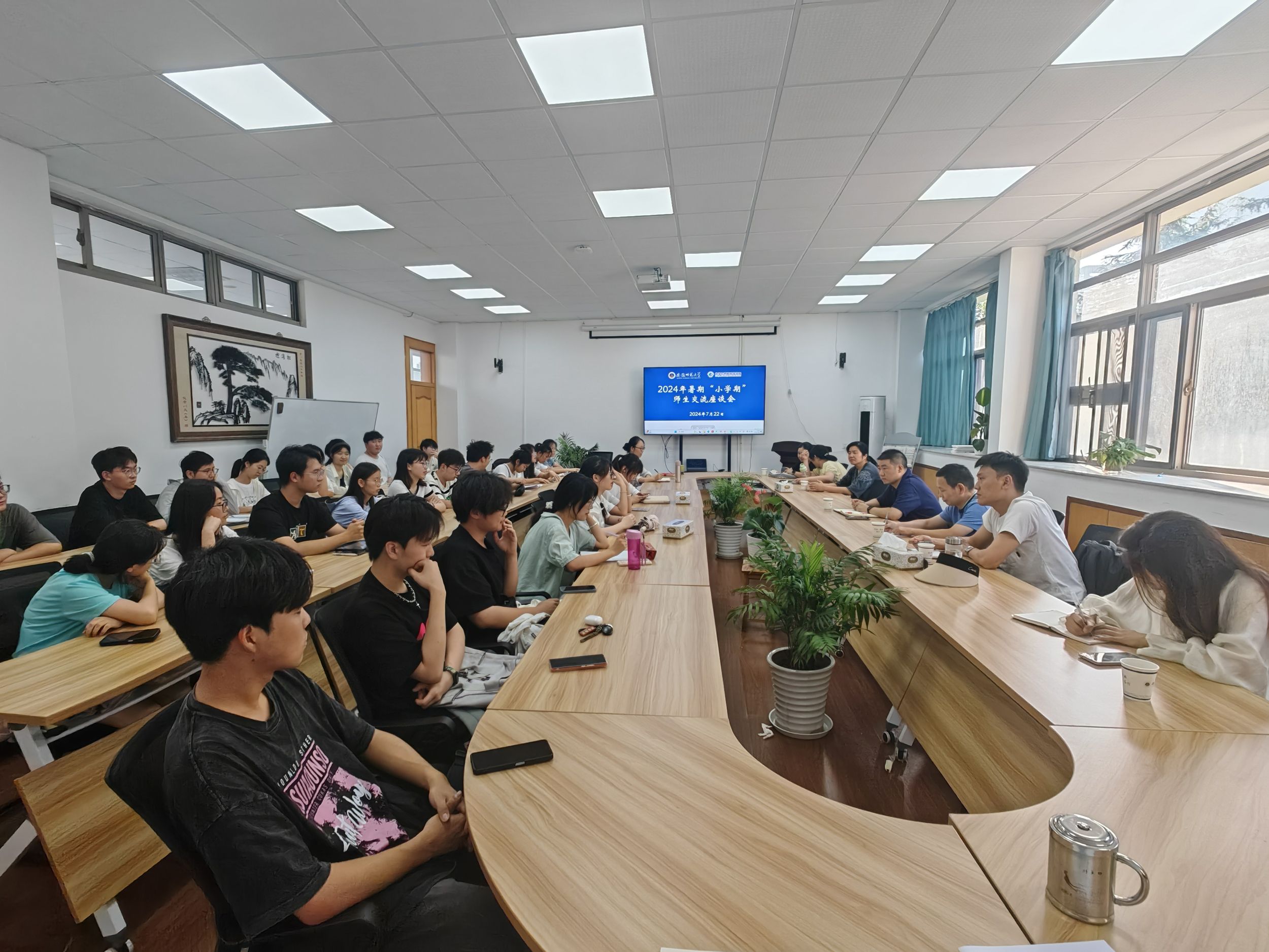在学苑北楼9号楼205会议室召开2024年暑期小学期师生交流座谈会,学院党委副书记李古州,小学期跟班班主任陈华茂、云瑞瑞、刘云春、程瑶琴、周冬冬,辅导员和来自学院及阜阳师范大学的学生代表参加会议,会议由李古州主持。