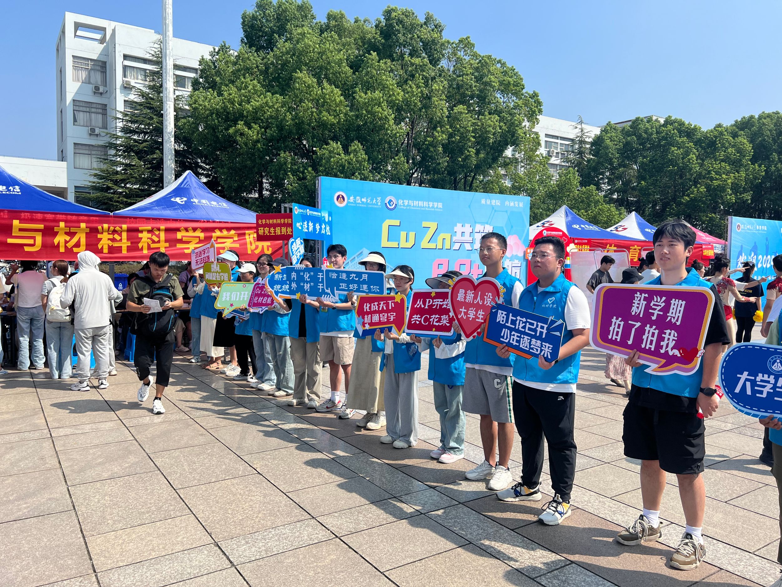 学生实习实训产品(洗手液、洗衣液)、印有化材logo的帆布袋、彩色卡套、笔记本、透明环保水杯等纪念品,传递着学院对新生的深切关怀与殷切期望。迎新现场,身穿蓝色小马甲的51吃瓜网