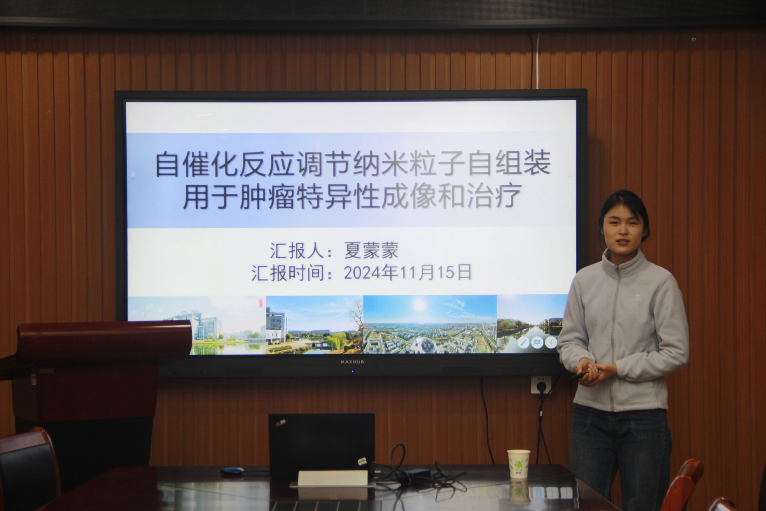 随后,2022级博士研究生曹汐以《电催化二氧化碳还原的研究》为题,详细解释了纳米颗粒的引入对二氧化碳还原过程的影响。2022级材料科学与工程专业硕士研究生杨懿栋向与会同学介绍了个人研究成果:在H形池中,Cu的加入对MnO2的的Urea的合成性能和稳定性的影响。2022级化学专业硕士研究生谢涛从选题背景、设计思路、设计原则、合成方法和机理探究等角度讲解了个人学术成果。2022级博士研究生夏蒙蒙以《自催化反应调节纳米粒子组装用于肿瘤特异性成像和治疗》为题,认真讲解如何进行实验设计,讲解过程丝丝入扣。2022级博士研究生吴昊以《光催化非张力酮脱酰基构建C-X键的反应研究》为题,讲解文章的研究背景和研究内容。