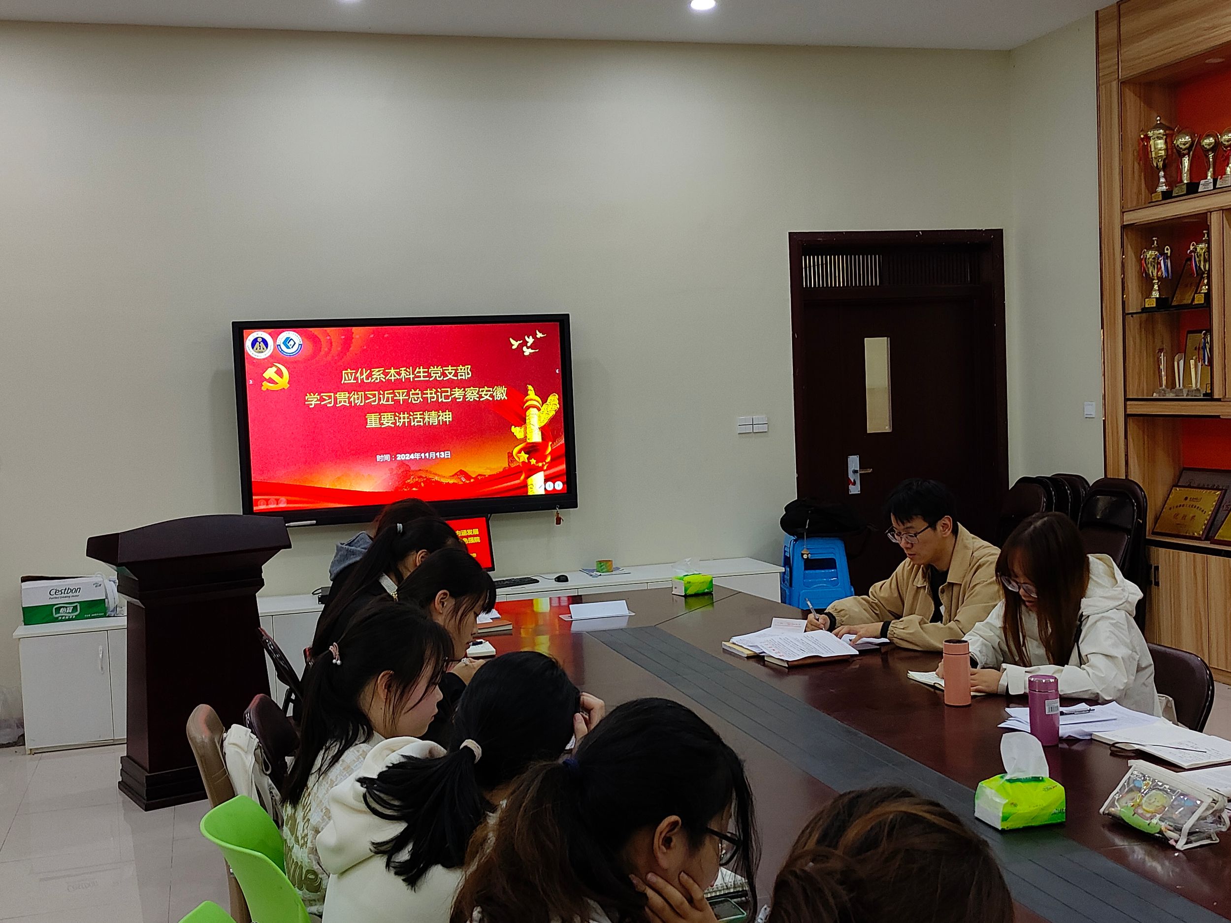 后小芳、梁成)2024年11月13日下午,应化系本科生党支部于礼勤楼702、201会议室召开党员发展支部大会暨党的二十届三中全会专题党课学习,学院党委副书记李古州作为普通党员参会并讲授主题党课,会议由支部书记梁成主持。