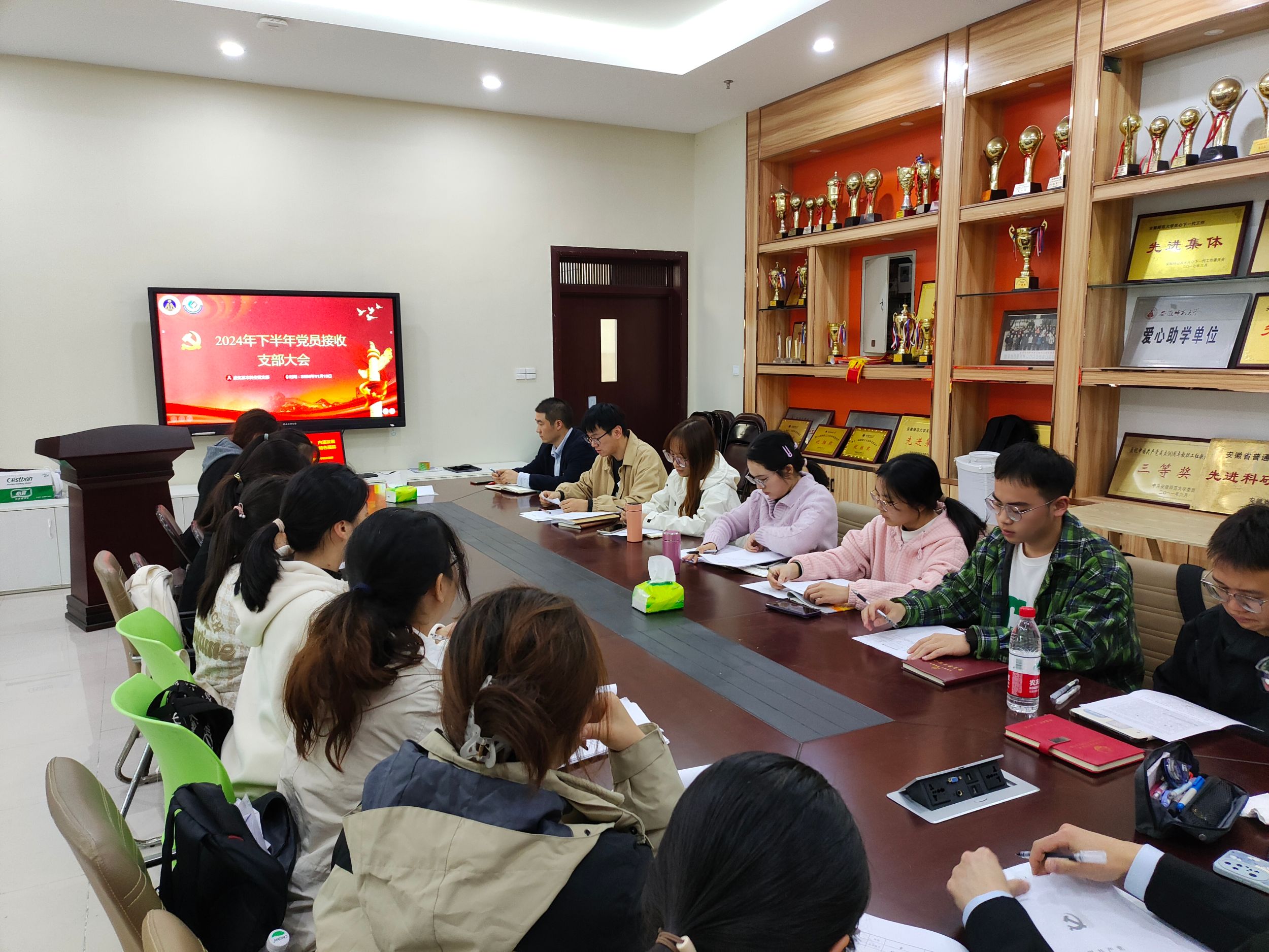 大会第二项议程,应化系本科生党支部在礼勤楼201会议室召开党支部大会,大会讨论接受卢超等6名同志转为中共预备党员的相关事宜,大会由支部书记梁成主持。卢超等6名发展对象依次向党支部进行汇报,表明自己的入党动机和加入中国共产党的强烈愿望。随后,入党介绍人从理论学习、日常表现等方面介绍发展对象的培养考察情况。与会党员对发展对象能否入党进行充分讨论并发表意见,发展对象对大家所提意见进行了综合表态。支部书记梁成代表支委会汇报了6位同志的审查情况,通过讨论,大会认为卢超等6名同志基本符合党员条件,经与会正式党员投票表决,一致同意接收卢超等6名同志成为中共预备党员,拟提交学院党委审核。