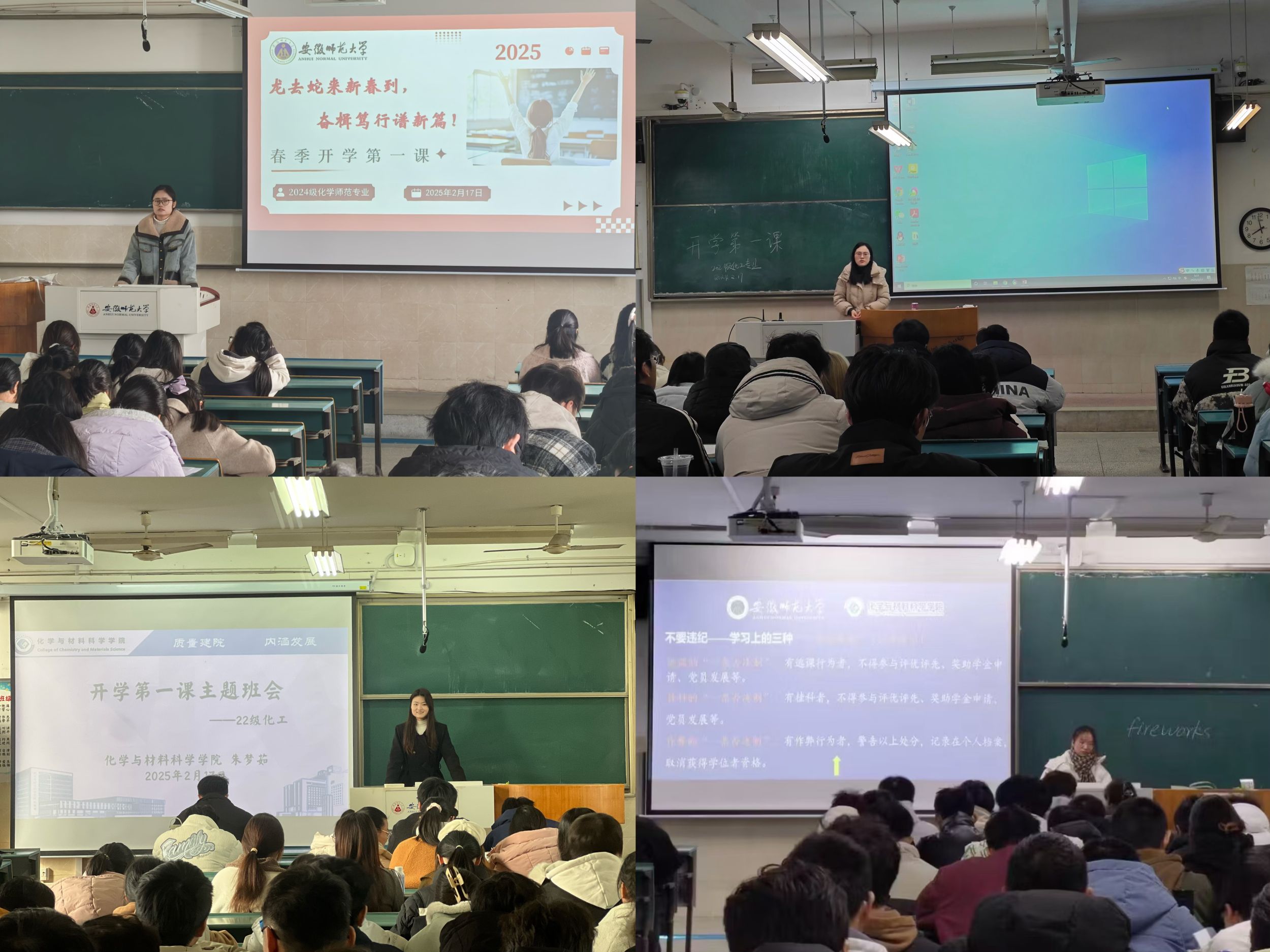 上好“收心课”,调整状态迎接新学期。为帮助学生尽快摆脱“假期综合征”,各班级在开学初召开“开学第一课”主题班会。班会上,辅导员老师们引导学生回顾假期生活,分享收获和感悟,并针对新学期制定学习计划和目标,帮助学生调整心态,树立信心,以积极向上的精神面貌迎接新学期。
