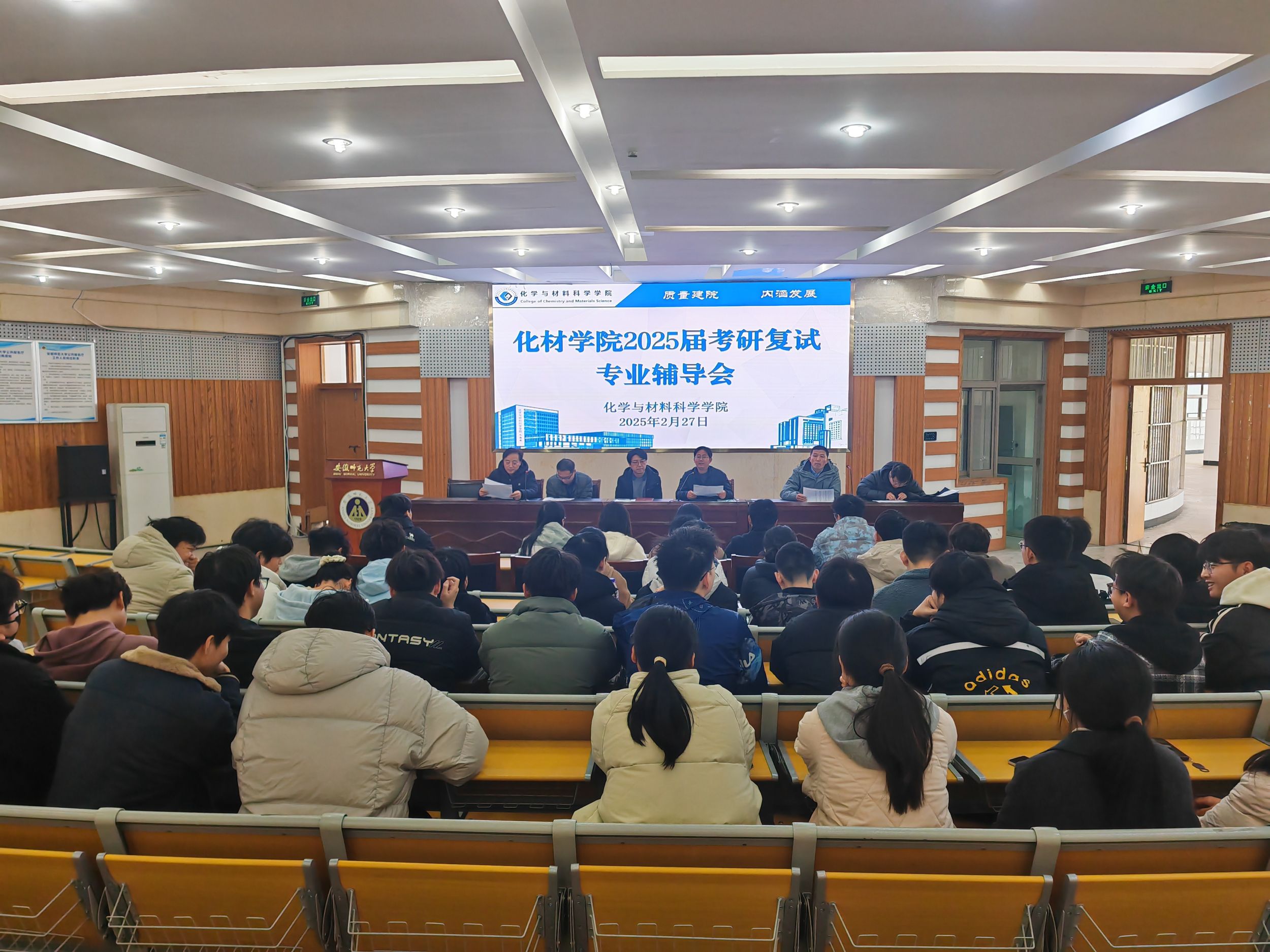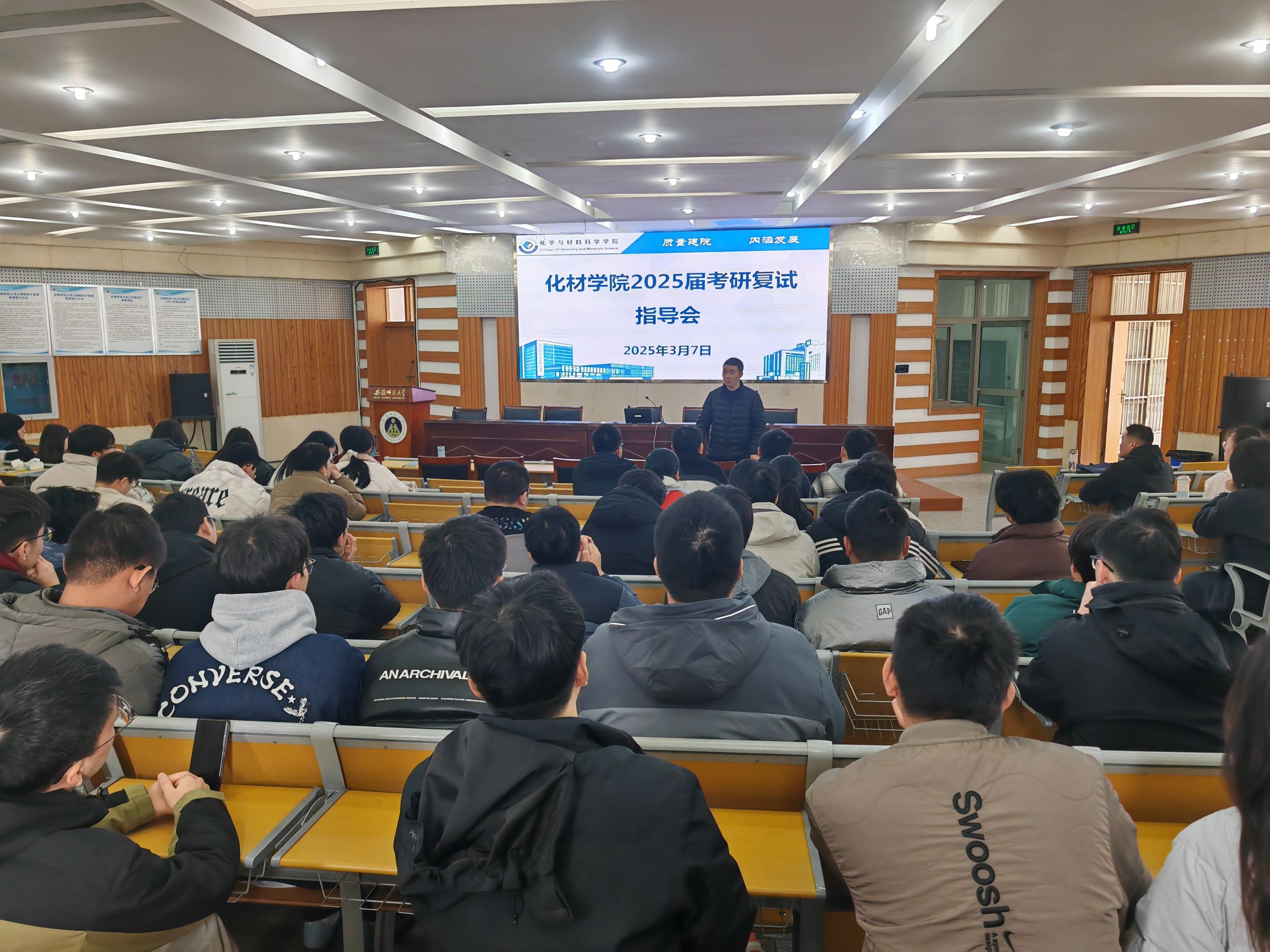 副院长崔鹏以详实数据分析了今年全国考研形势与化学材料类学科复试特点,指出“调剂窗口期短、竞争激烈”,建议学生“拓宽信息渠道,主动出击,同时做好多手准备”。党委副书记李古州在总结讲话中充分肯定同学们的拼搏精神,并寄语广大同学:“考研是人生的重要历练,无论结果如何,学院永远是你们的坚强后盾。希望你们以扎实的专业功底、从容的心态和诚信的态度迎接挑战,在复试中展现化材学子的风采!”。