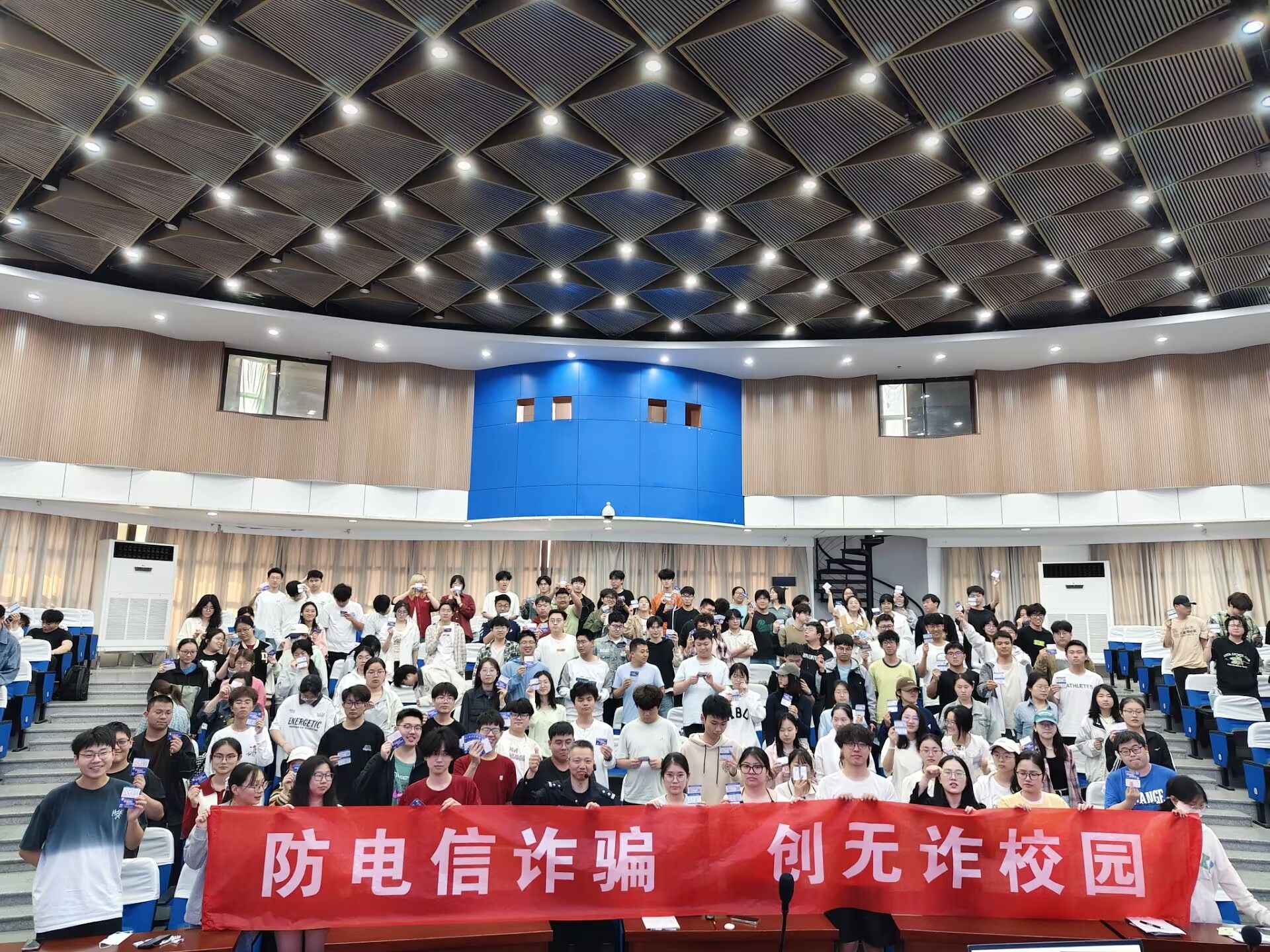 学院邀请高校园区派出所副所长朱滦河作题为《增强安全意识 护航高校学子》的专题讲座。他围绕“养德守法敬学慎行护平安”展开授课,重点强调了预防诈骗。朱警官凭借丰富的从业经验和知识,从“什么是诈骗”“常见的诈骗手段”“怎样有效预防诈骗”“真实案例”“防诈知识互动问答”等方面进行阐述,结合高校的典型案例、真实数据,深入剖析校园诈骗的运作机制,为同学们揭开校园骗局的层层面纱。提醒同学们不要轻信陌生人、不要点击不明链接、注意保护个人信息等,以警校联合的方式为学生提供安全保障。他强调,寝室长和学生干部是开展校园安全教育的中坚力量,必须带头宣传校园安全知识,营造平安、和谐的学习生活氛围。同学们纷纷表示,通过此次讲座,更加深刻地认识到防范诈骗不仅关乎个人财产安全,更是维护社会安全的关键。