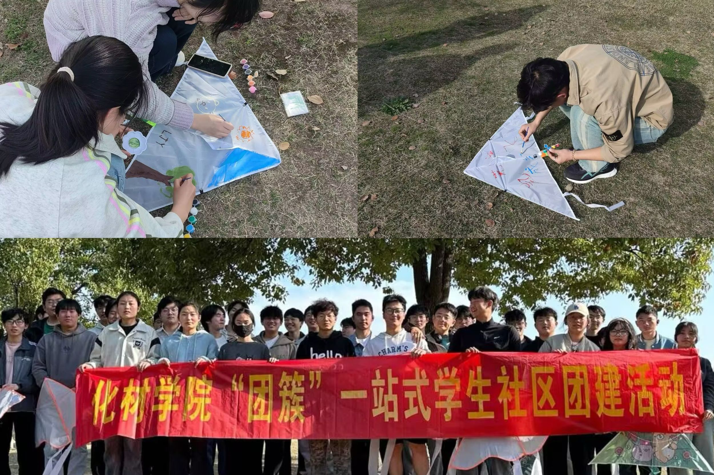 “平时学习安排的很紧凑,但通过这次有意义的活动,看着自己亲手风筝越飞越高,好像心里的重担与压力也随风消散了。”2023级应用化学专业的贡佳瑶笑着调整手中线轴,她手中的风筝正与蓝天相映成趣。这场跨越年龄的童趣体验,让化材学子在奔跑中重拾赤子之心,在协作中感受集体温度。
