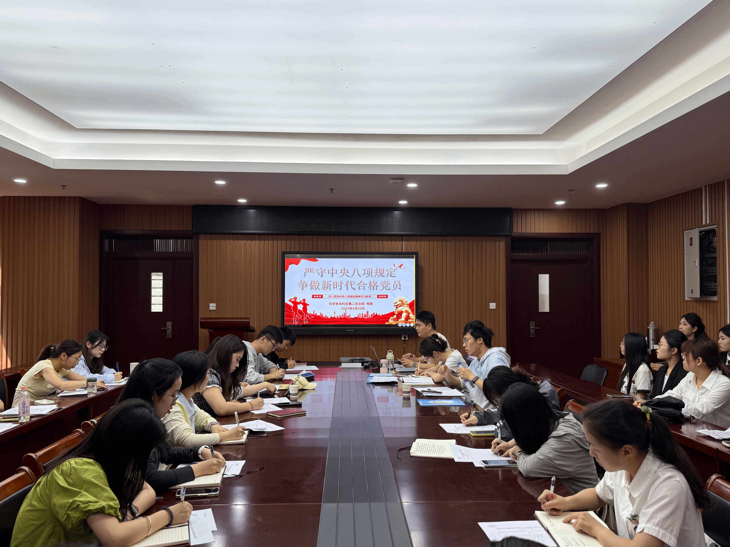 杨妍、陶勇)为深入贯彻中央八项规定精神学习教育,2025年4月29日下午,化学系本科生第二党支部于礼勤楼702会议室召开深入贯彻中央八项规定精神学习教育专题会议,支部全体党员参会。会议由支部书记陶勇主持。