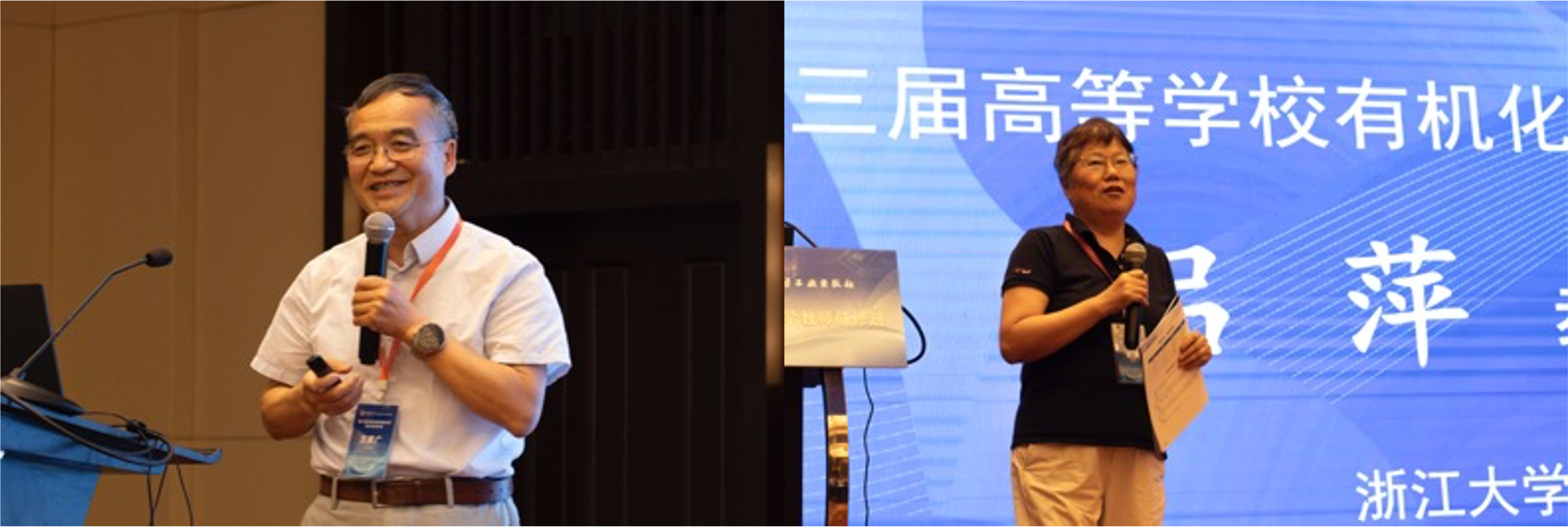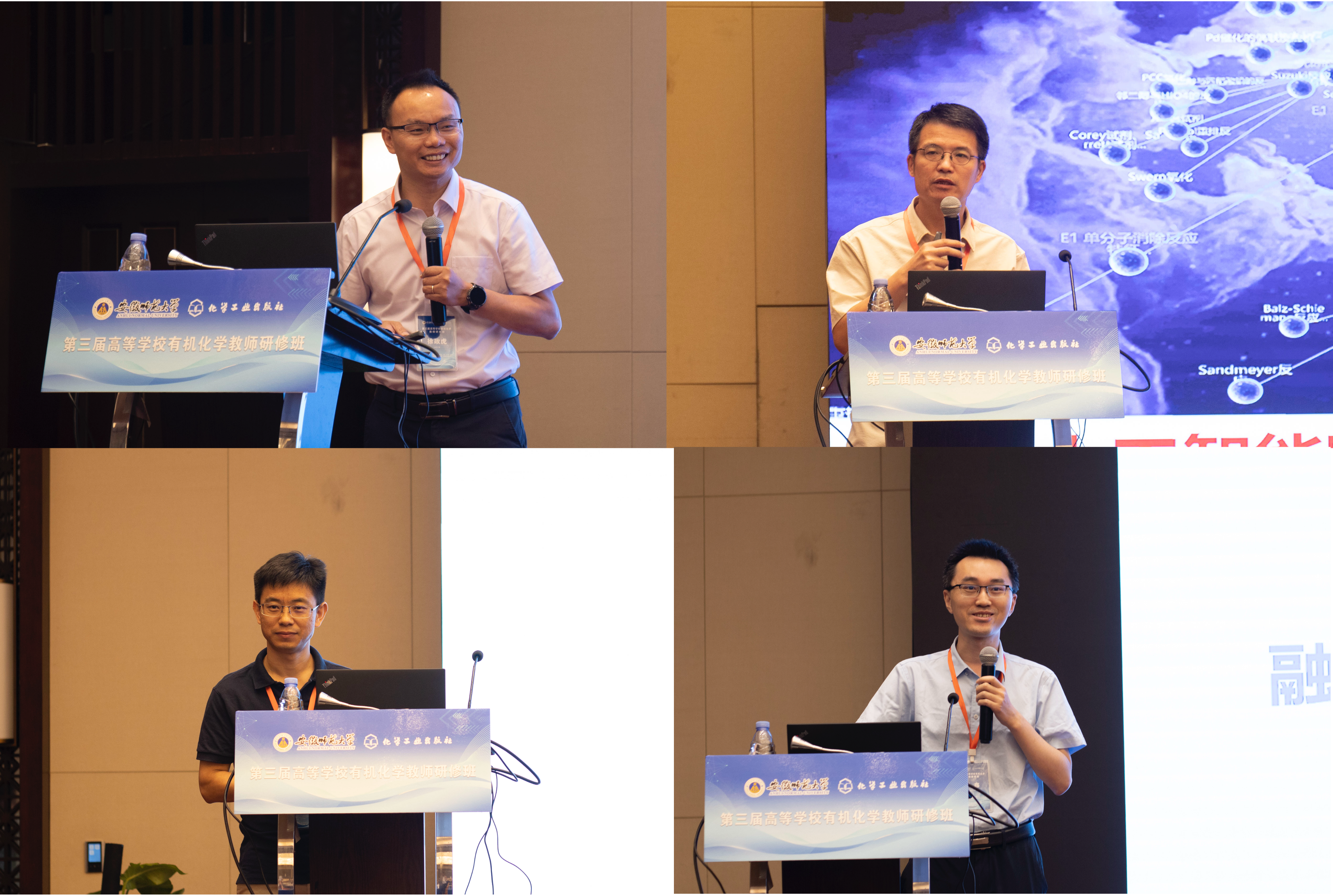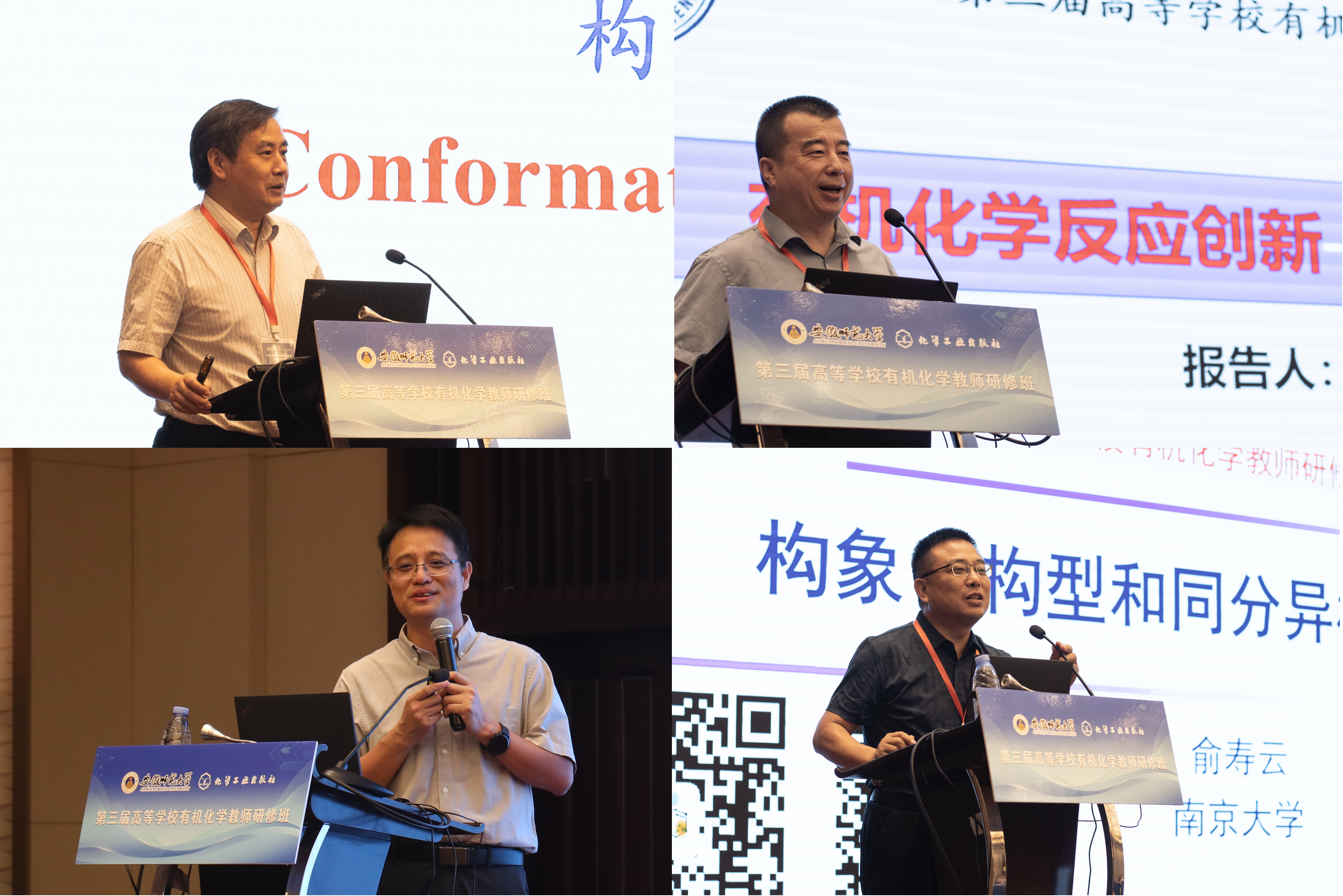 本次研修班延续了前两届的特色,以示范课为主要形式向一线教师传经送宝,共安排了9个大会报告。各大会报告按顺序分别为:构象分析(北京大学裴坚教授),有机化学反应创新:传统与反传统(厦门大学张延东教授),构象、构型和同分异构体(南京大学俞寿云教授),有机化学数据、机理与模型(清华大学罗三中教授),金属有机化学基础(武汉大学刘文博教授),让有机化学“看得见”、“讲得清”、“答得透”:融合计算与智能的教学实践(浙江大学洪鑫教授),从定性到定量:基于pKa进行大学有机化学教学(山东大学徐政虎教授),人工智能赋能《有机化学》智慧课程建设与实践(湖南大学刘强教授),亲核取代反应:机理与立体化学(浙江大学王彦广教授)。9个大会报告紧扣有机化学核心概念与教学重、难点,聚焦构型、构象分析,反应机理与立体化学,经典反应创新,酸碱化学,金属有机化学,同时融合前沿技术与教学实践,探索数据与模型驱动机理研究,理论计算辅助教学,以及人工智能赋能课程建设,系统提升了参会老师对学科核心知识的把握能力与创新教学方法的应用能力。