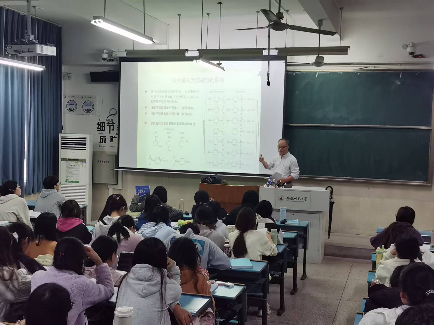 宋佳慧)为落实以生为本教学理念,进一步推动课堂教学创新,助力学生化学思维与能力发展,2025年11月7日,胡跃飞教授在花津校区一号楼2010302教室为2024级化学师范一班的同学们带来《有机化学》课堂教学示范课。学院教学副院长、学院教学督导、部分教师参与了本次教学示范活动。