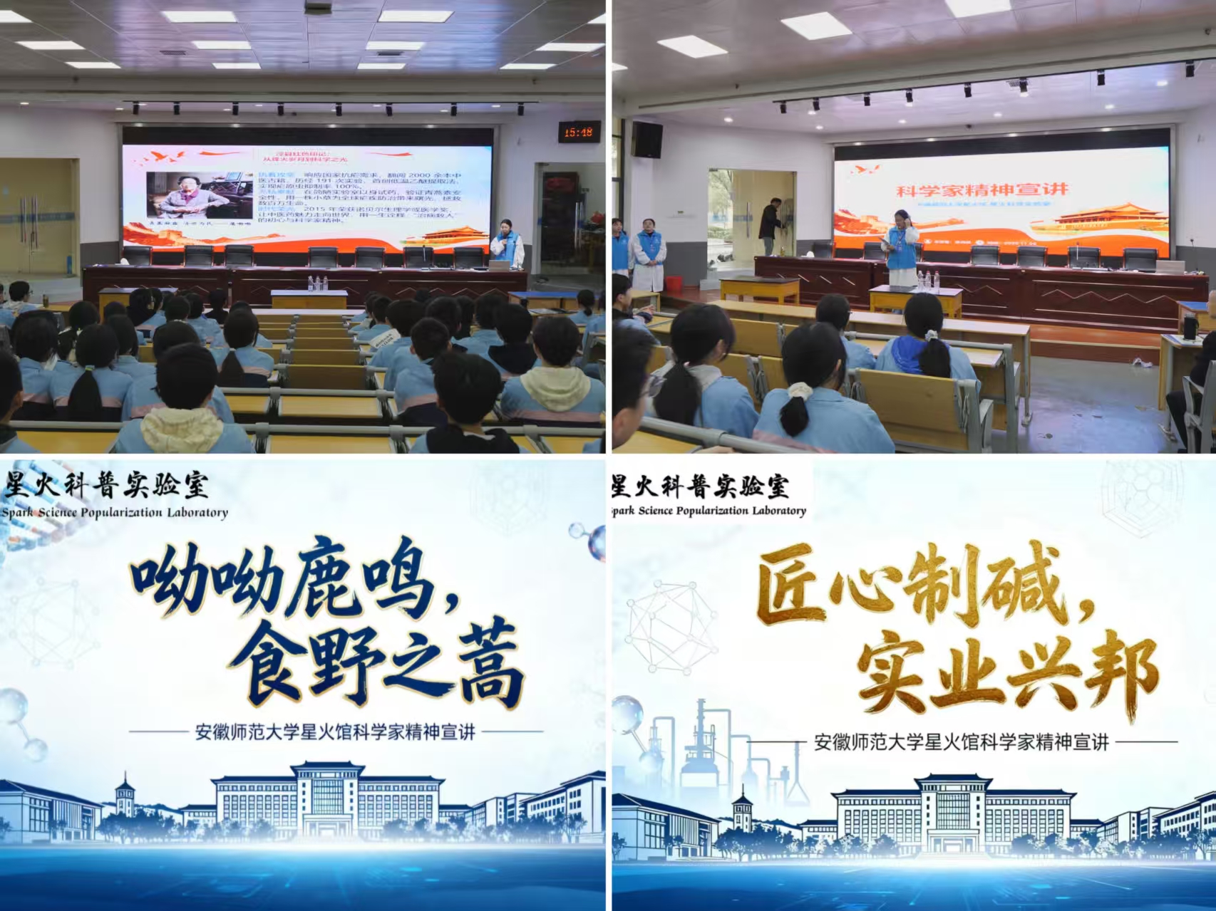 科学家精神宣讲环节,师生共同聚焦《匠心制碱,实业兴邦》《呦呦鹿鸣,食野之蒿》科学家精神的主题宣讲。志愿者同学结合泾县红色老区的革命精神,深情地介绍了侯德榜和屠呦呦两位科学家的事迹,并且播放了安徽师大星火馆制作的科学家视频。科学家们攻坚克难的执着、实业兴邦的担当深深打动着每一位同学,一颗颗崇尚科学、勇于探索的种子悄然扎根心底,红色基因与科学精神在此刻实现美好交融。