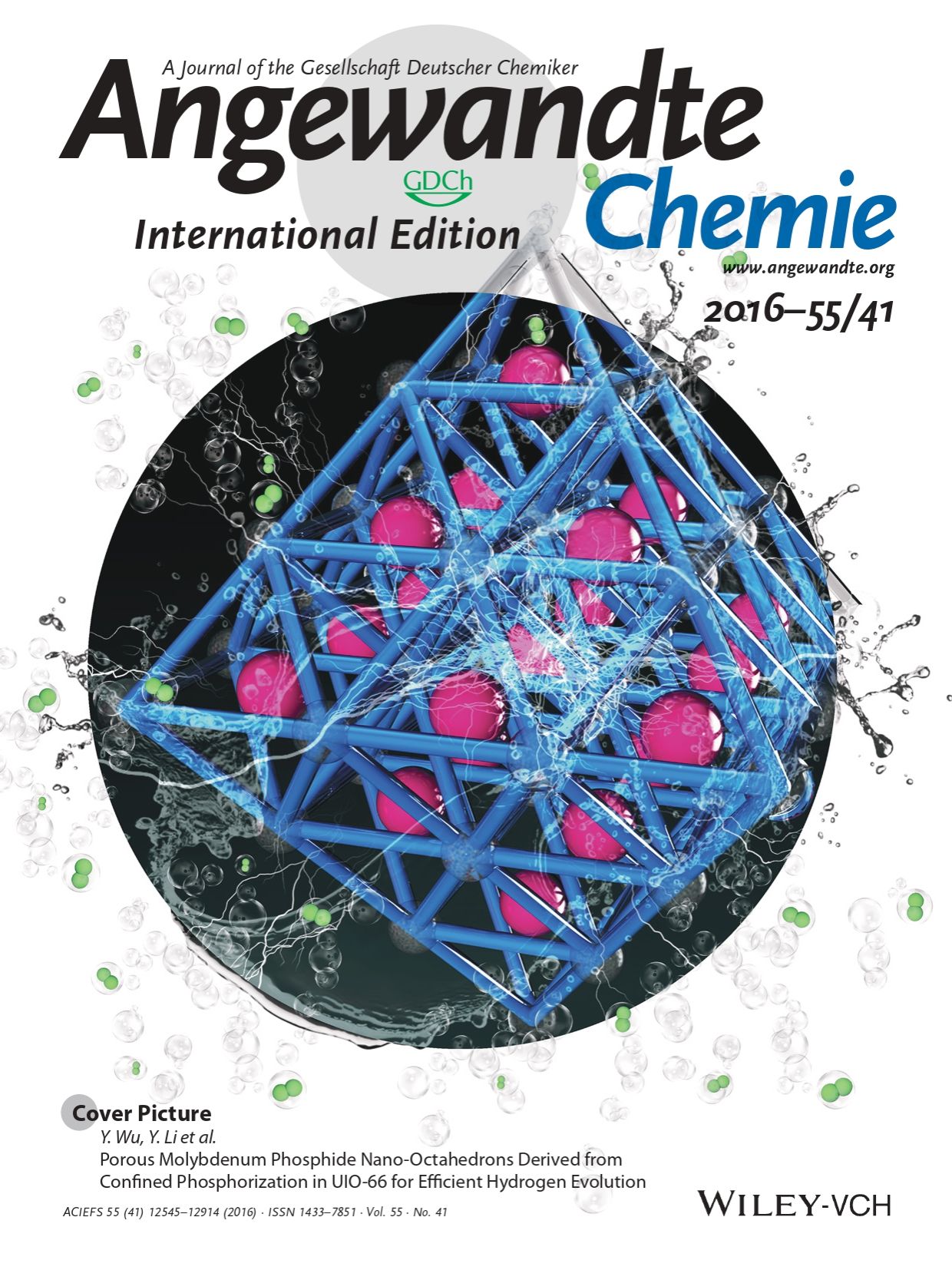 (2) Yang Jian, Zhang Fengjun, Wang Xin, He Dongsheng, Wu Geng, Yang Qinghua, Hong Xun, Wu Yuen,* Li Yadong.* Porous Molybdenum Phosphide Nano-Octahedrons Derived from Confined Phosphorization in UIO-66 for Efficient Hydrogen Evolution. Angewandte Chemie International Edition, 2016, 55(41): 12854-12858.