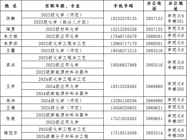 本科生辅导员信息一览表