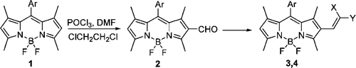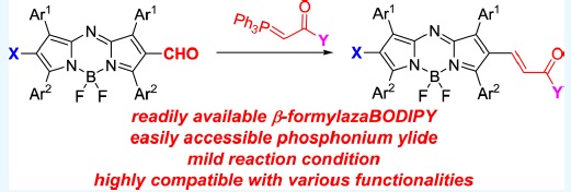 7. Wang, J.; Wu, Y.; Sheng, W.; Yu, C.; Wei, Y.; Hao, E.;Jiao, L.*Synthesis, Structure, and Properties of β-Vinyl Ketone/Ester Functionalized AzaBODIPYs from FormylazaBODIPYs.ACS Omega,2017,2,2568-2576.
