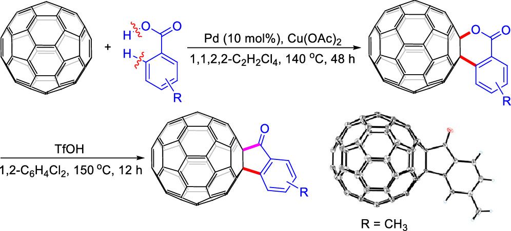 13. Qing-Song Liu#, Wen-Jie Qiu#, Chuang Niu, Guan-Wu Wang*, Palladium-Catalyzed C−H Activation/Cyclization for the Synthesis of [60]Fullerene-Fused Phosphinolactones, .