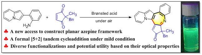 22)Qijian Ni*, Lirong Zhang, Zhiming Zhu, Xiaoxiao Song*.Formal [5+2] cycloaddition of ortho-indolizinyl anilines with cyclo-pentendiones: access to planar indolizine-fused azepines,Org. Chem. Front.2023,10,2526-2531.