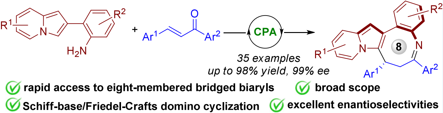 20)Xiaoxiao Song*, Yanjun Fan, Zhiming Zhu,Qijian Ni*.Chiral Phosphoric Acid Catalyzed Asymmetric Arylation of Indolizines: Atroposelective Access to Axially Chiral 3-Arylindolizines,Org.Lett.2022,24, 2315-2320.