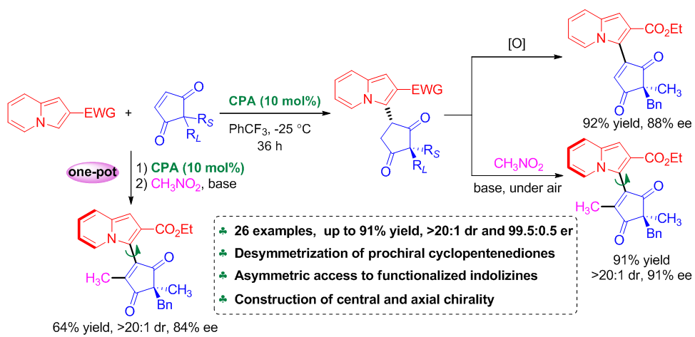 19)Qijian Ni*, Zhiming Zhu, Yanjun Fan, Xiaoyun Chen, Xiaoxiao Song*.Chiral Phosphoric Acid Catalyzed Desymmetrization of Cyclopentendiones via Friedel-Crafts Conjugate Addition of Indolizines,Org.Lett.2021,23,9548-9553.