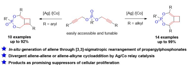 17)Qijian Ni, Xiaoxiao Song, Chin Wen Png, Yongliang Zhang*, Yu Zhao*. Access to Substituted Cyclobutenes by Tandem [3,3]-Sigmatropic Rearrangement/[2+2] Cycloaddition of Dipropargylphosphonates under Ag/Co Relay Catalysis,Chem. Sci.,2020,11,12329-12335.
