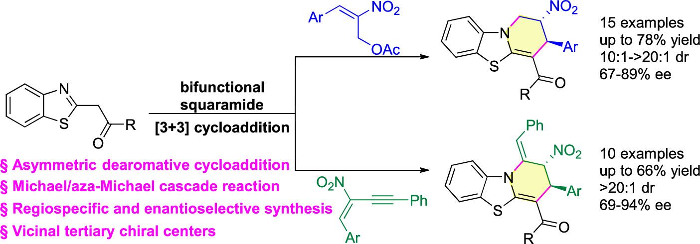 23) Xiaoxiao Song*, Wei Qin, Xuyang Wang, Gen Luo, and Qijian Ni*.Bifunctional Squaramide-Catalyzed Asymmetric Cascade Reaction of Benzothiazoles with 2-Nitroallylic Acetates or Nitroenynes,Org. Lett.2023,25, 9164-9169.