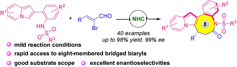 30)Yuanyuan Cheng,Jing Li, and Qijian Ni*.Enantioselective Access to Lactam-Fused Eight-Membered Bridged Biaryls via N‑Heterocyclic Carbene-Catalyzed [5 + 3]-Domino Annulation. Org. Lett. 2025, 27, 13579-13584.