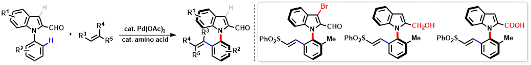 16) Construction of N−C Axial Chirality through Atroposelective C−H Olefination of N‑Arylindoles by Palladium/Amino Acid Cooperative Catalysis, Jitan Zhang,* Qiaoqiao Xu, Jiaping Wu, Jian Fan, Meihua Xie*, Org. Lett. 2019, 21, 6361. (Highlighted by Synfacts, 2019, 15, 1156)